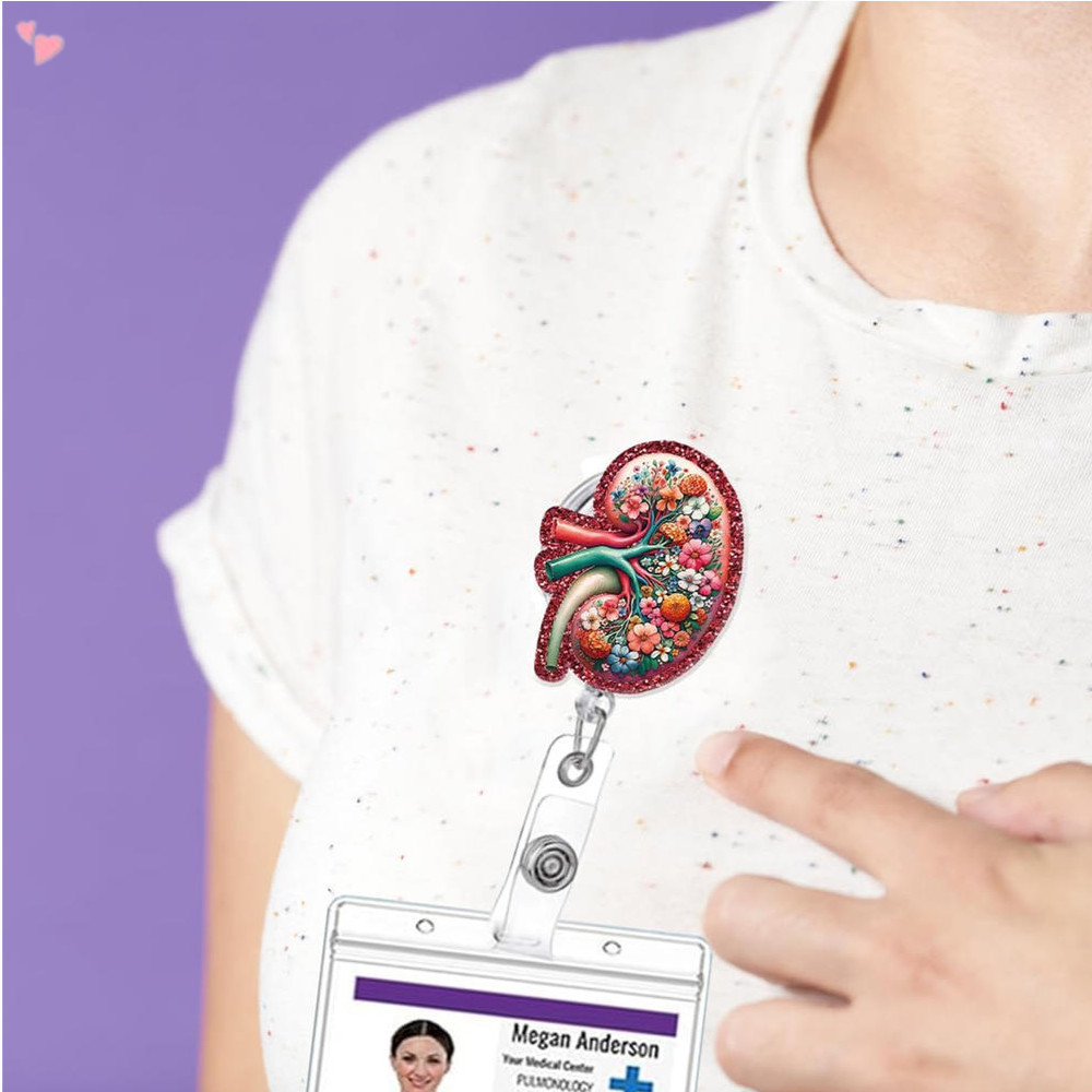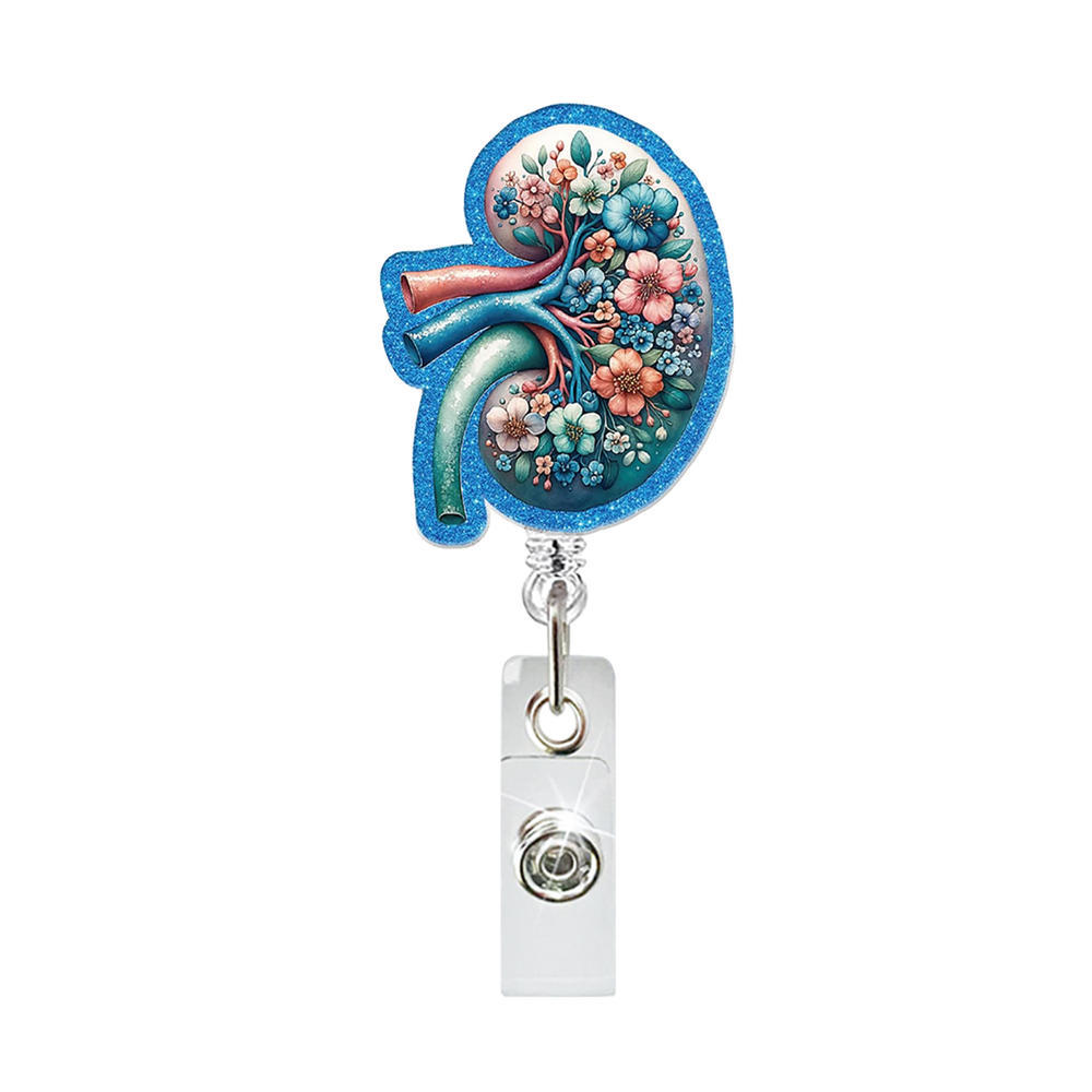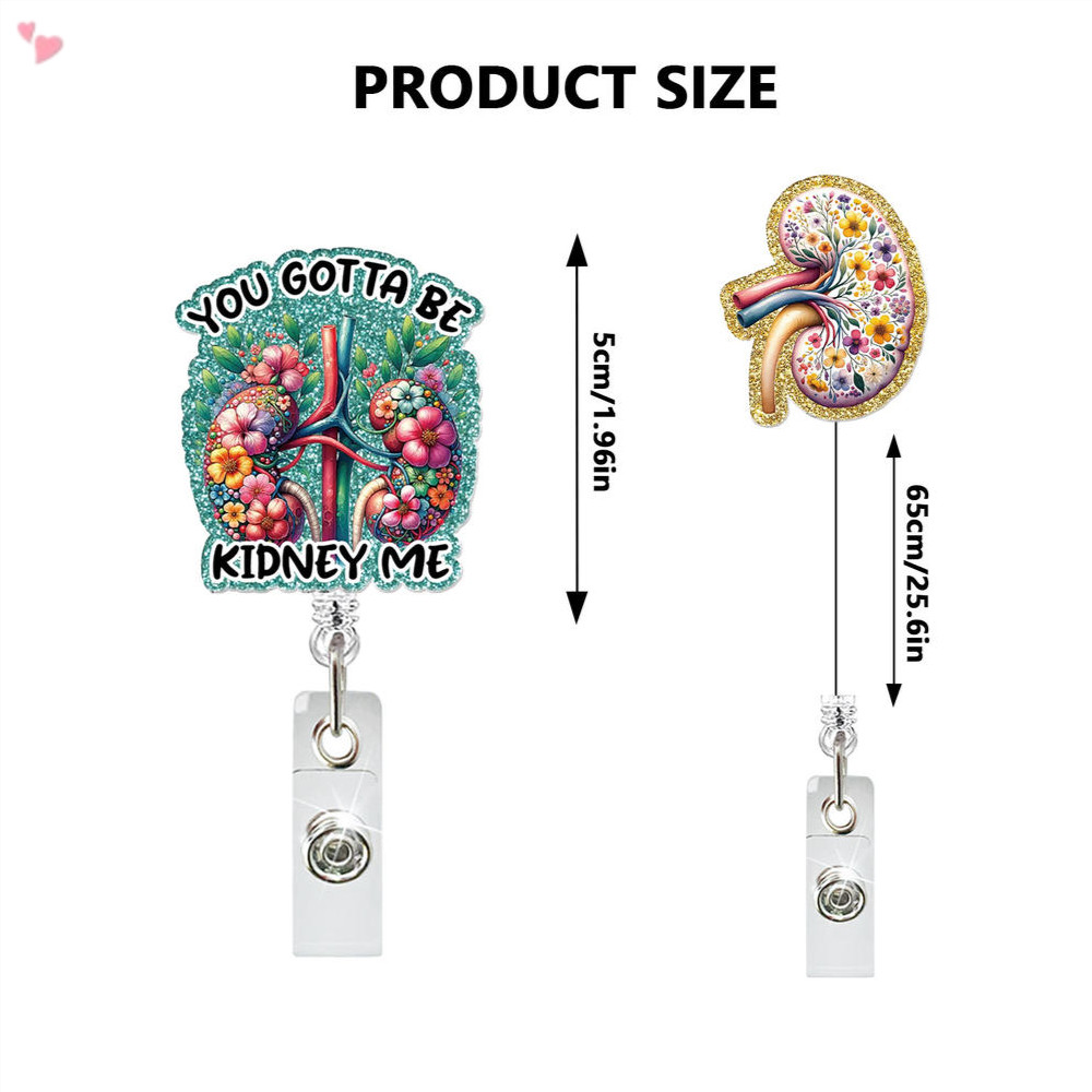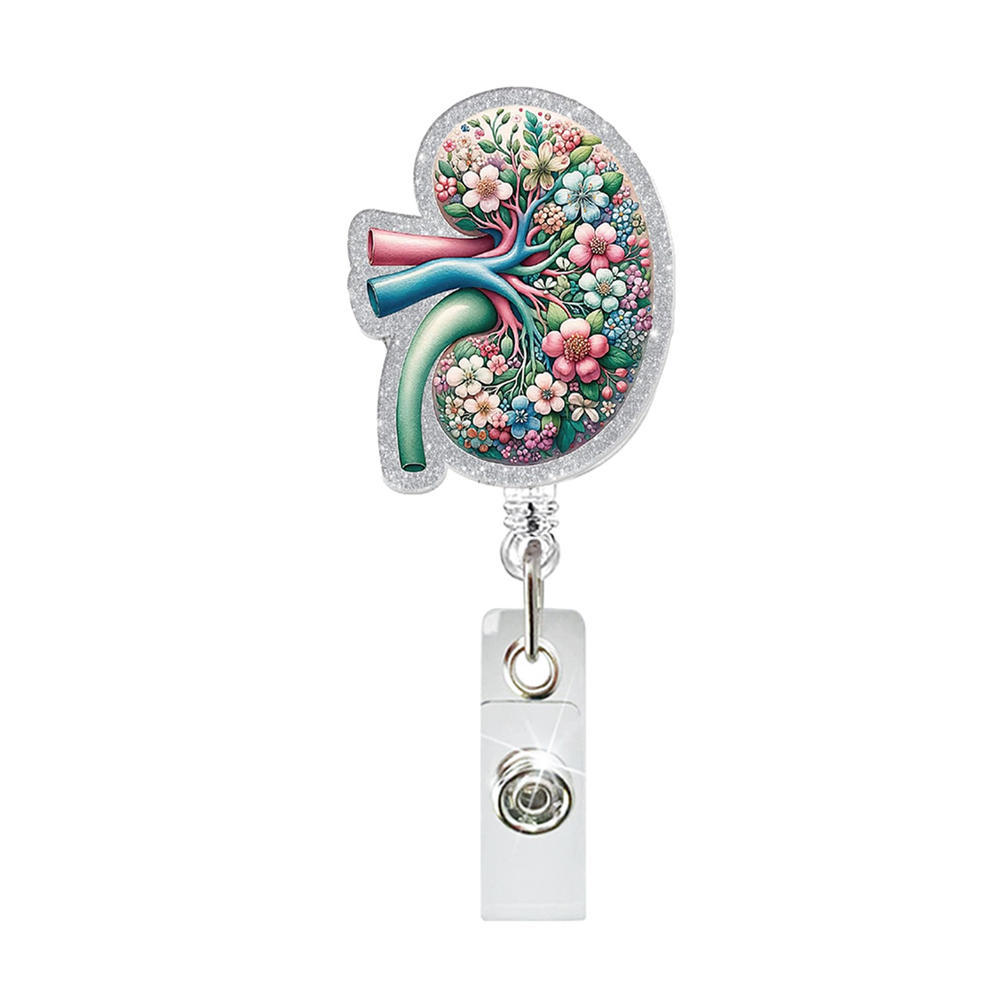 Carretel De Crachá De Rim Floral , Carretéis Urologia Porta Cartão De Identificação Retrátil Glitter Com Clipe De Jacaré