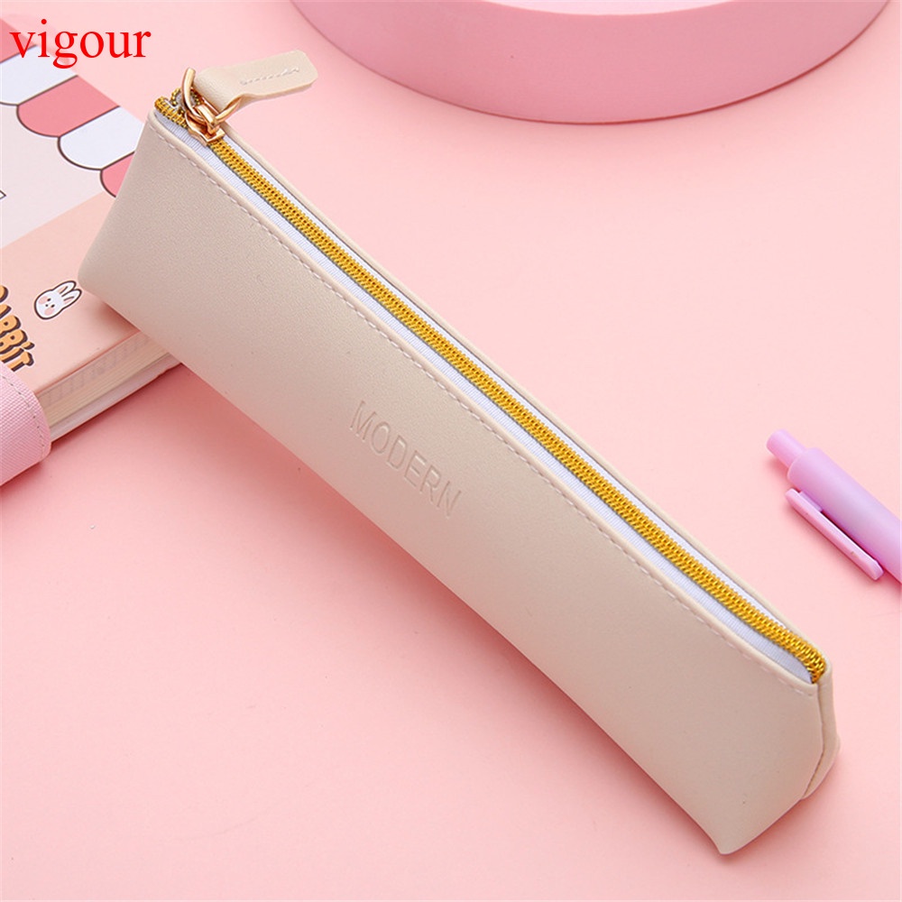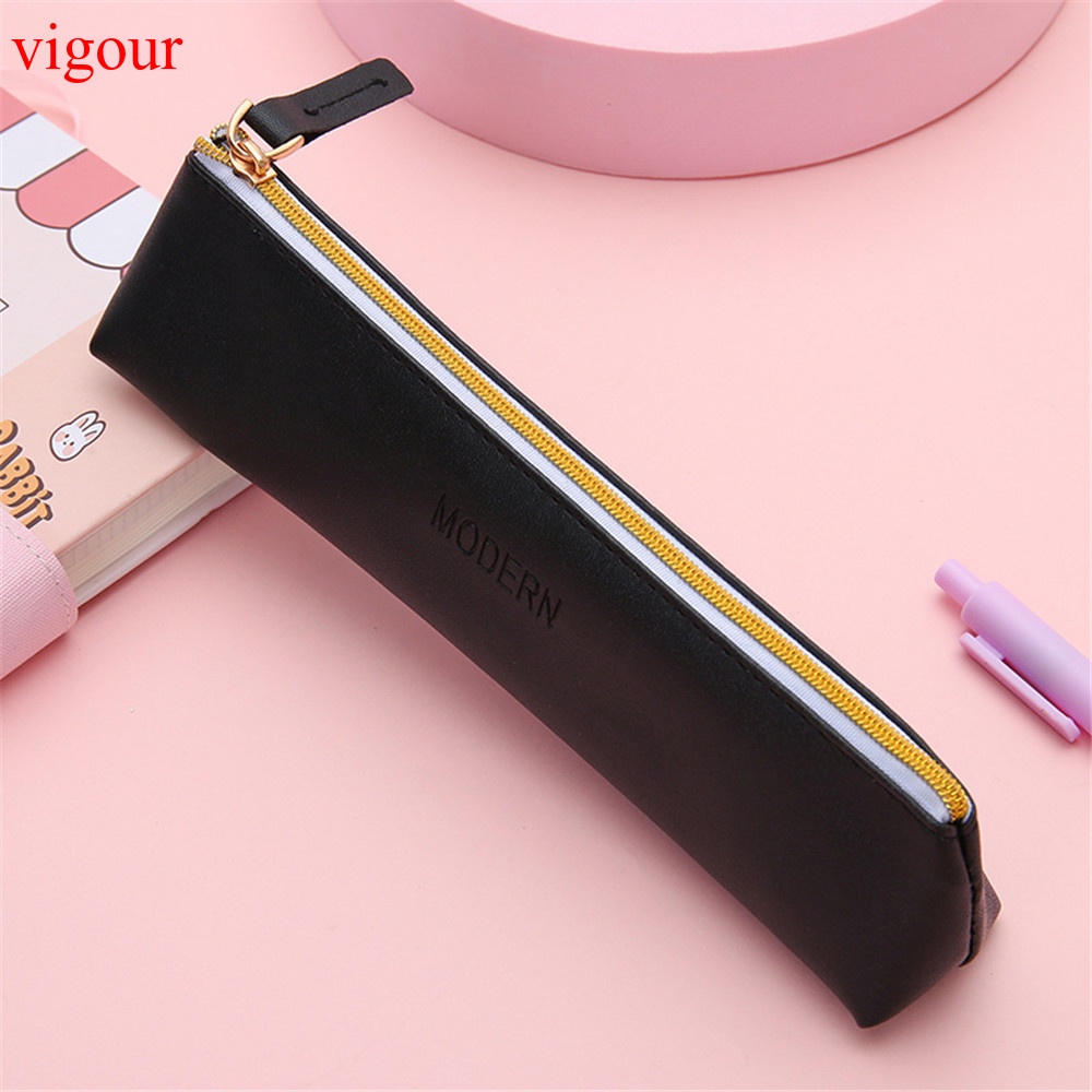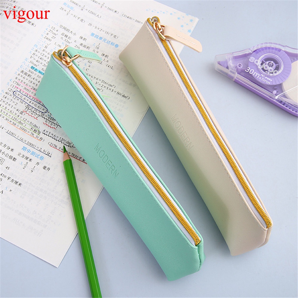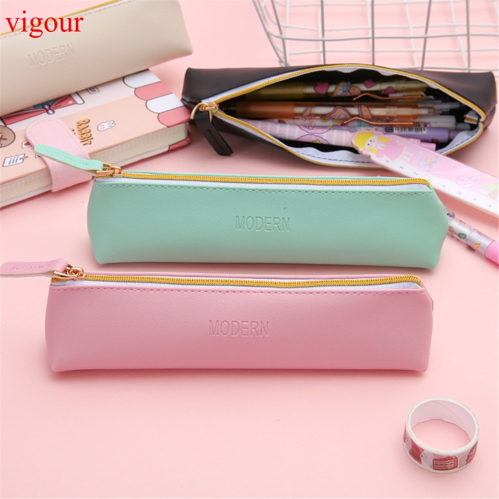 Pequeno Estojo De Lápis De Couro PU Escola Papelaria Caneta Caso Menina Armazenamento Estudante Material Escolar