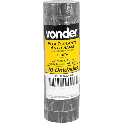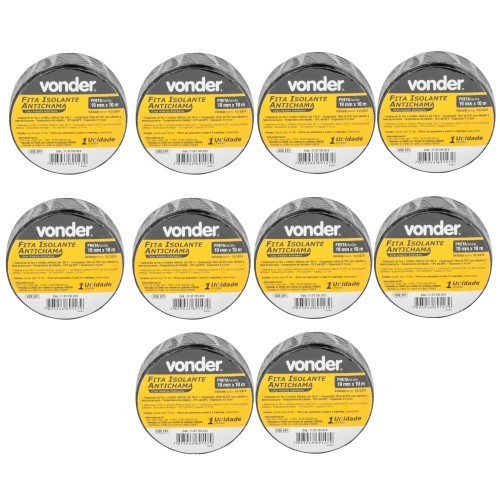 Kit 10 Fitas Isolante Anti Chama Preta de 10 Metros - Vonder