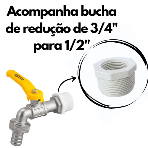 3 Torneiras com Esfera para Jardim e Tanque c/ Bucha Redução 3/4" para 1/2" - Vonder