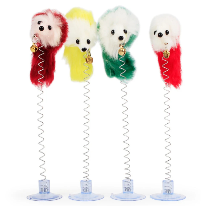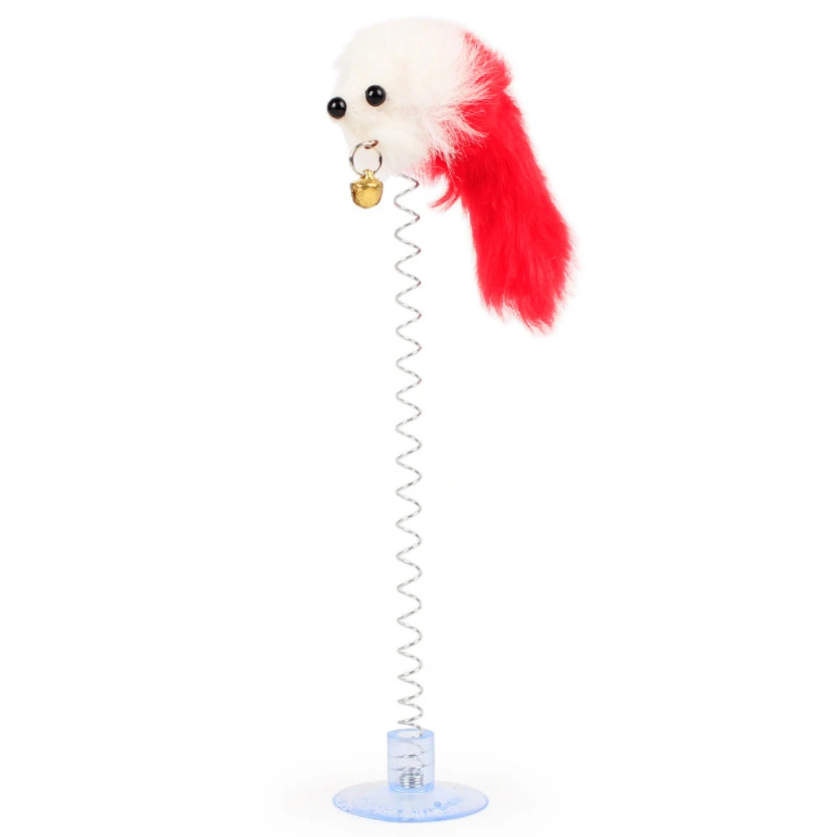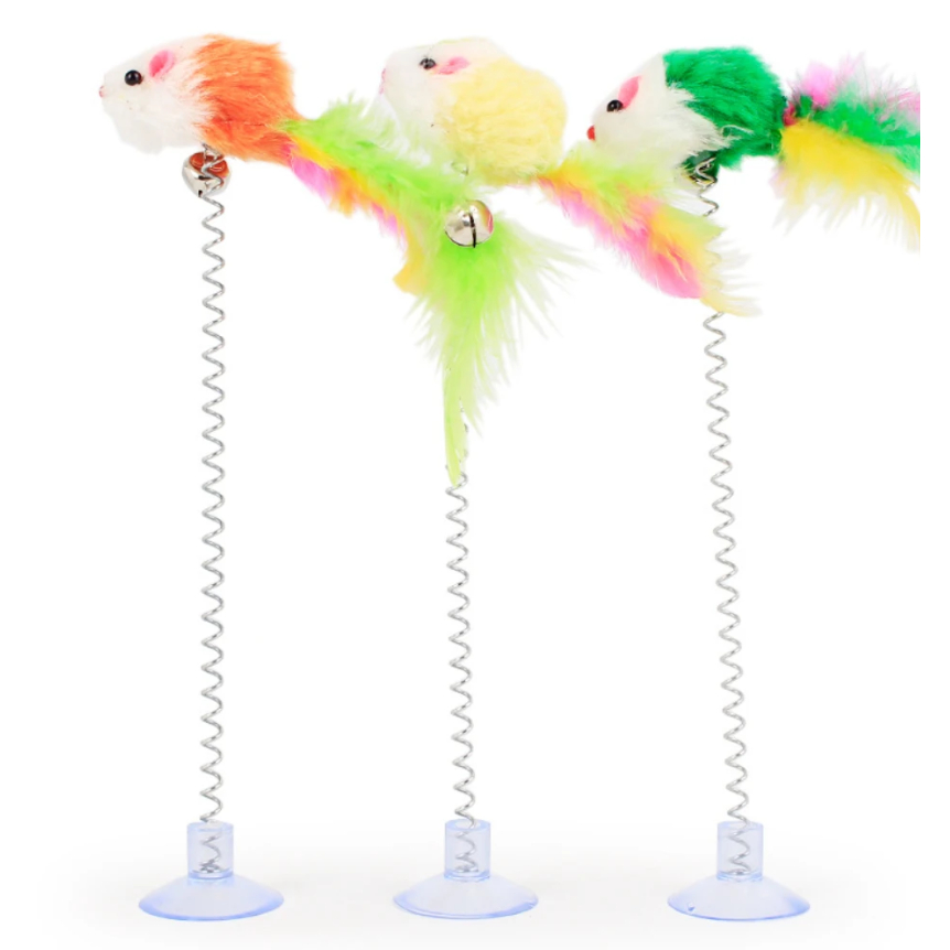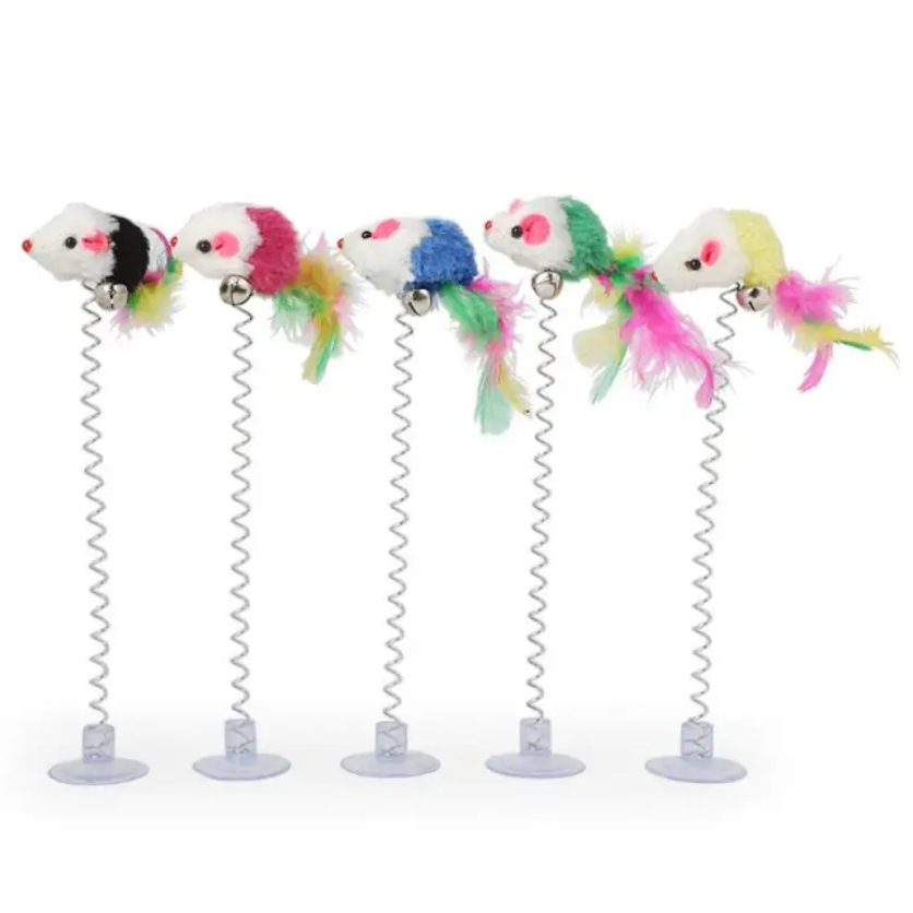 Brinquedo de mola para Gato com rato de pelúcia colorido ratinho pet