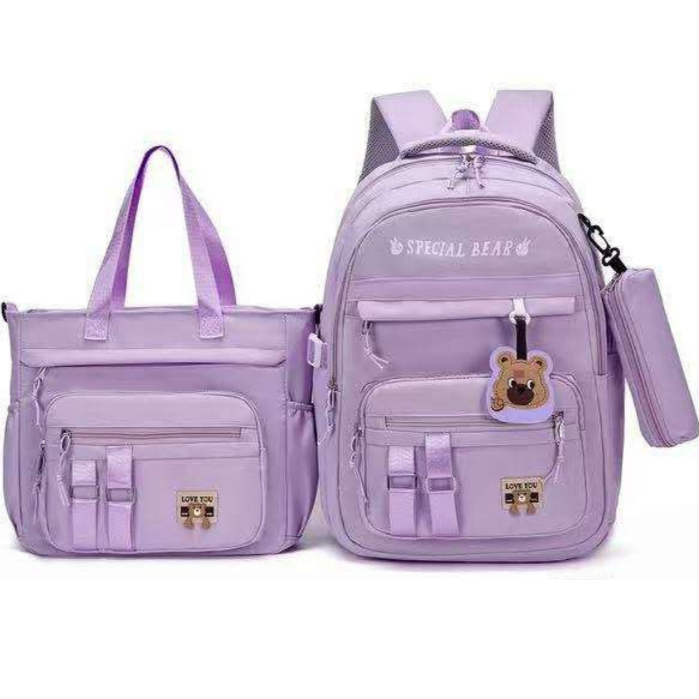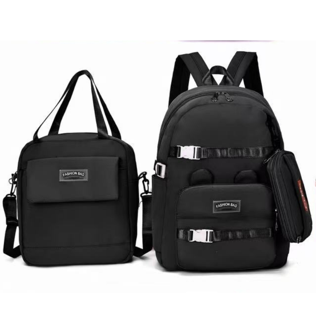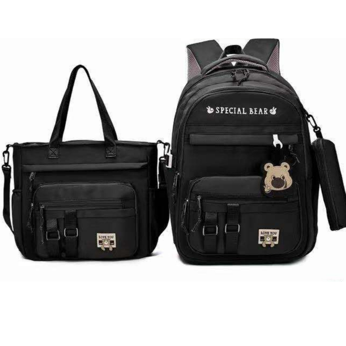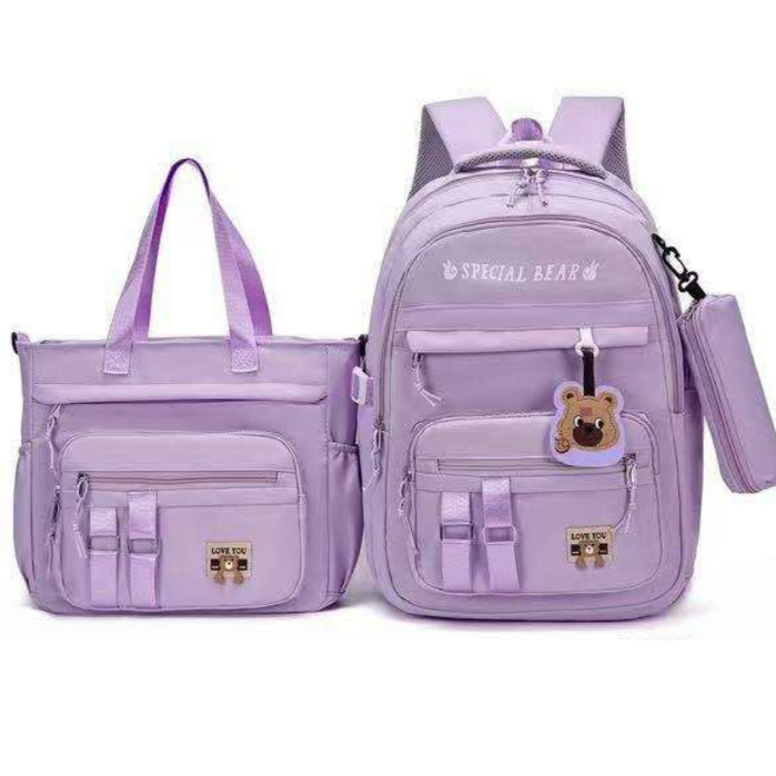 Kit 3 Bolsas Mochila + Bolsa + Estojo em Nylon Escolar Volta as Aulas