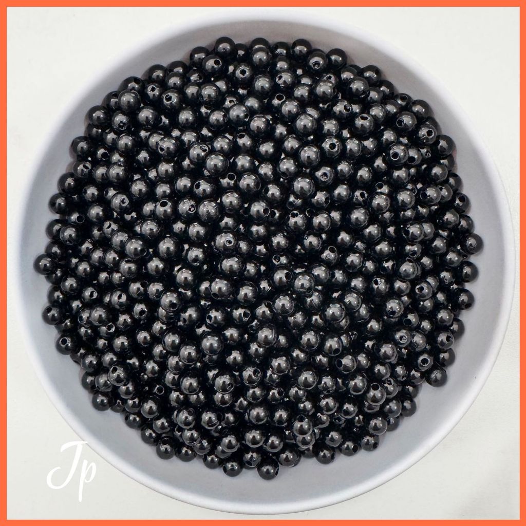 Pérola cor preta inteira ABS com furo passante 500g 6MM 8MM miçanga