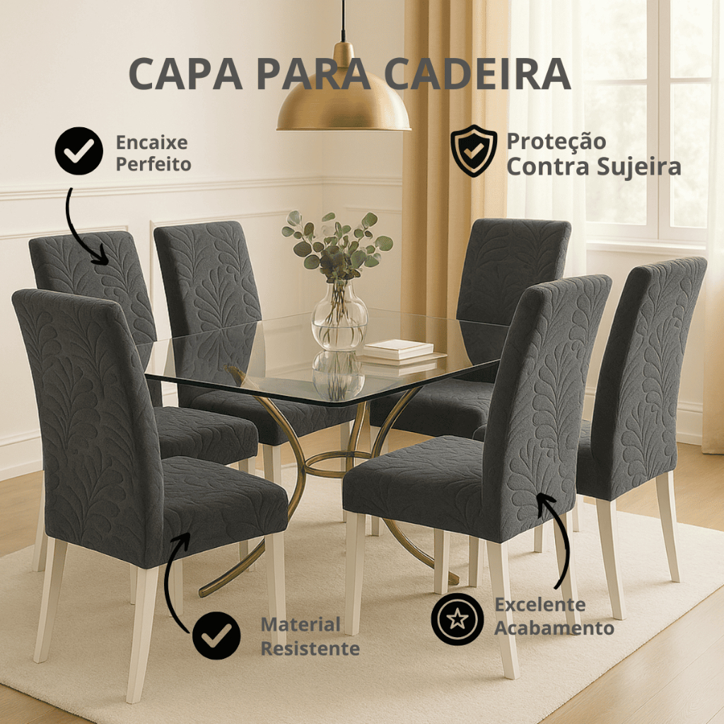 KIT Capa Elástica Para Cadeira Mesa de Jantar Estampas Variadas Marrom ou Vinho