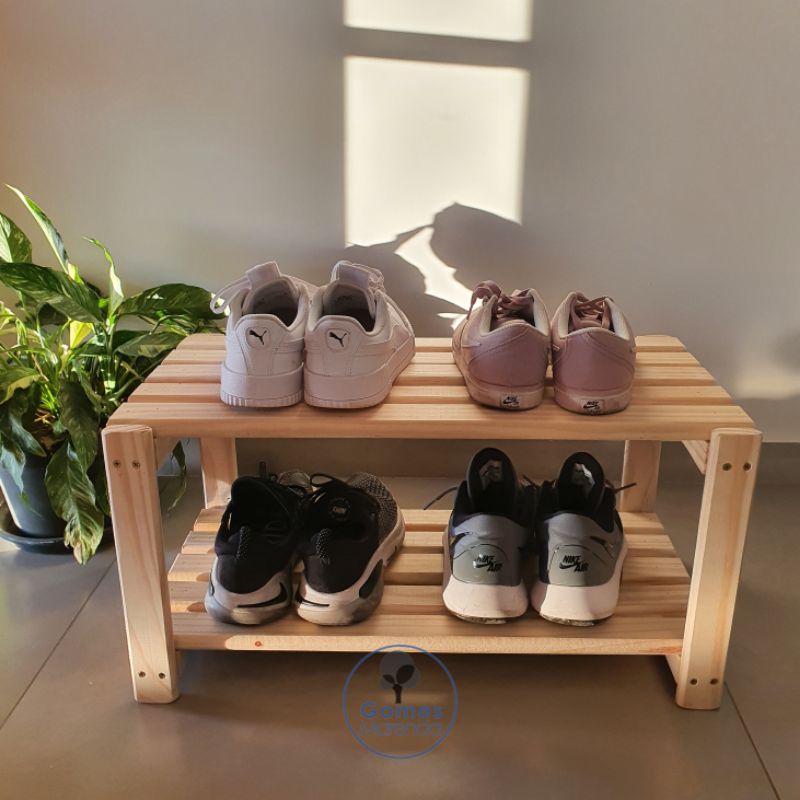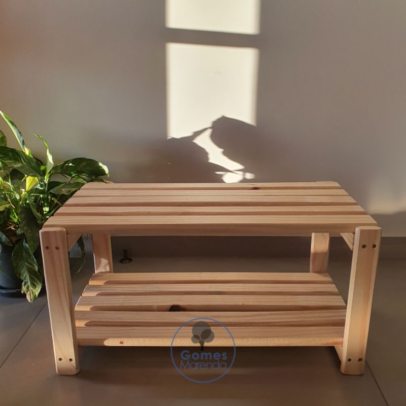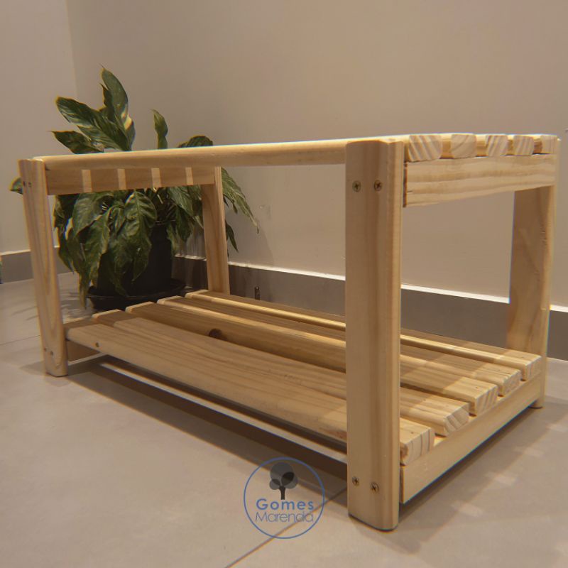 Sapateira Banco para Hall de Entrada em Madeira de Pinus com 2 Prateleiras