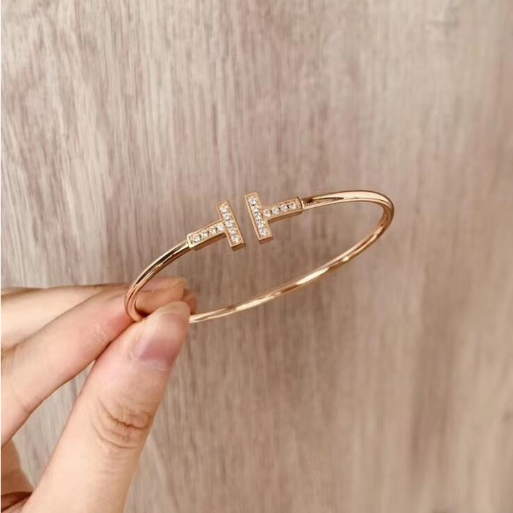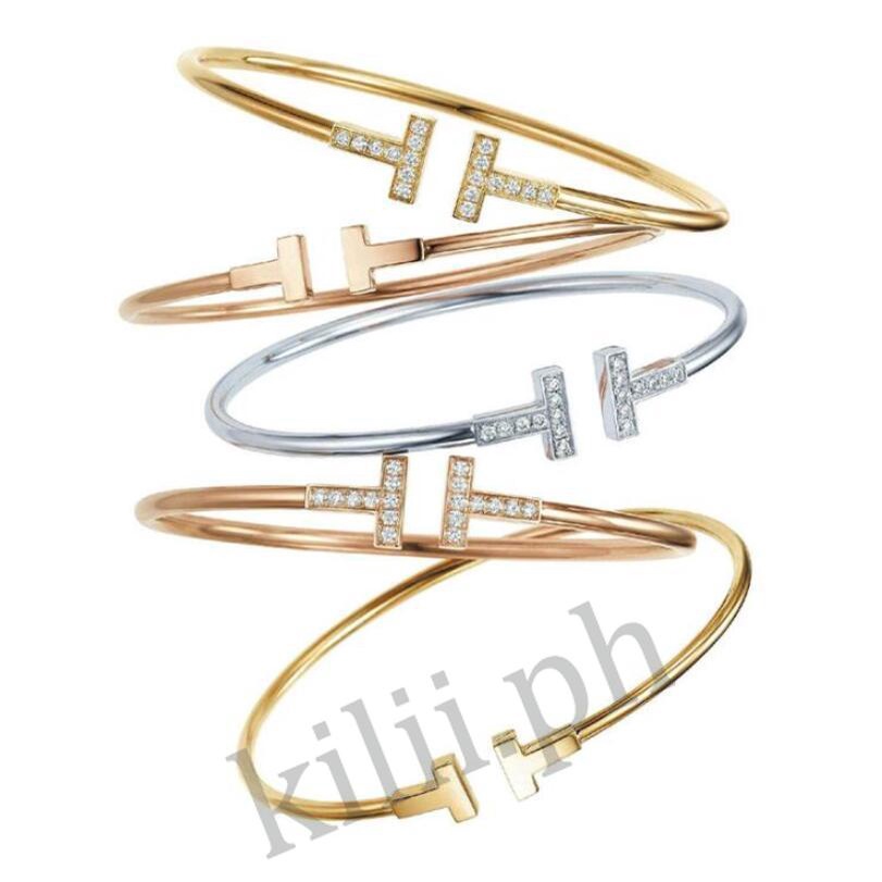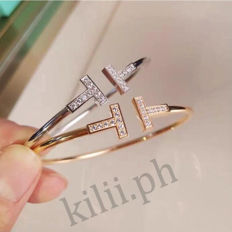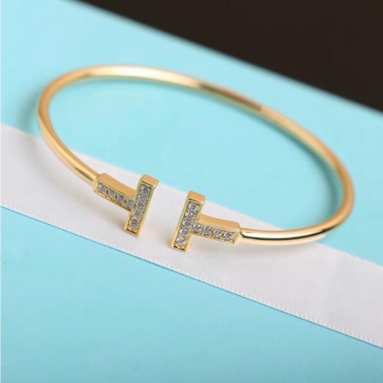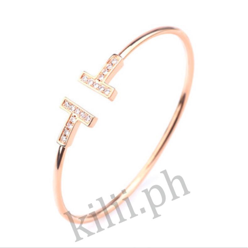 Pulseira kilii Menina Aberta Ajustável Letra T rhinestone