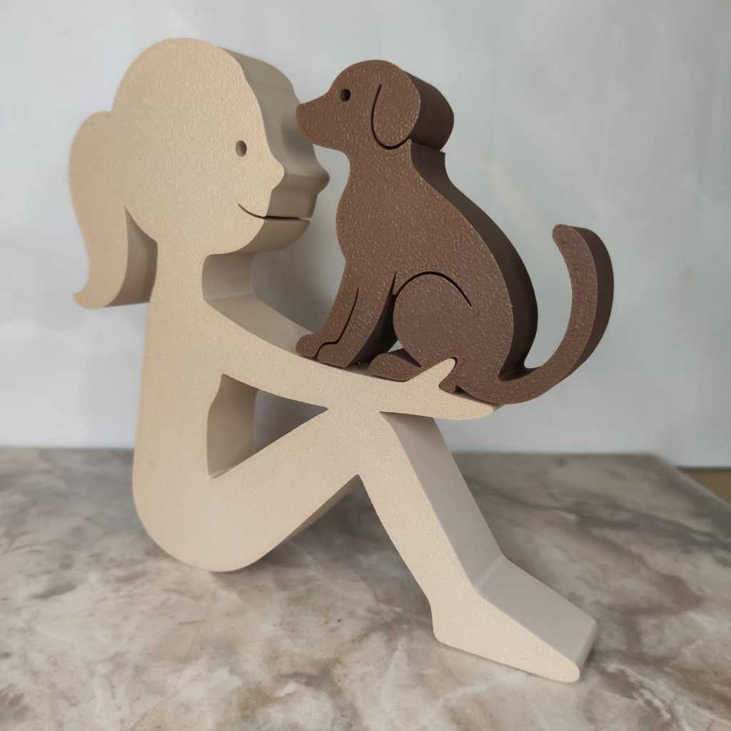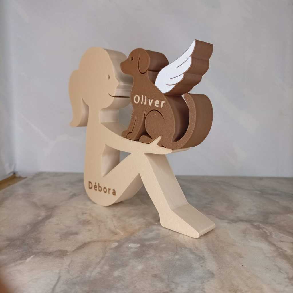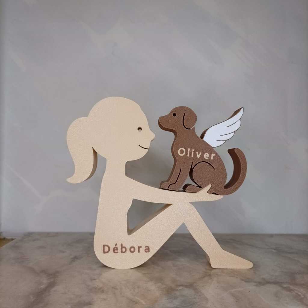 Escultura Decorativa Menina com Cachorro de Asas ou Normal – Cachorro Anjo - Impressão 3D