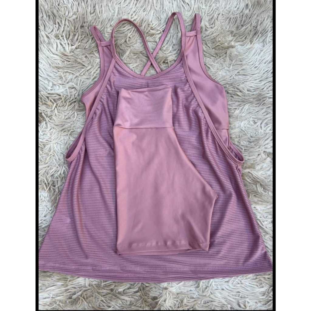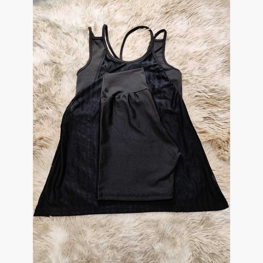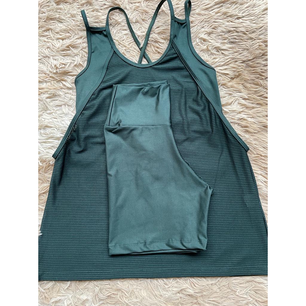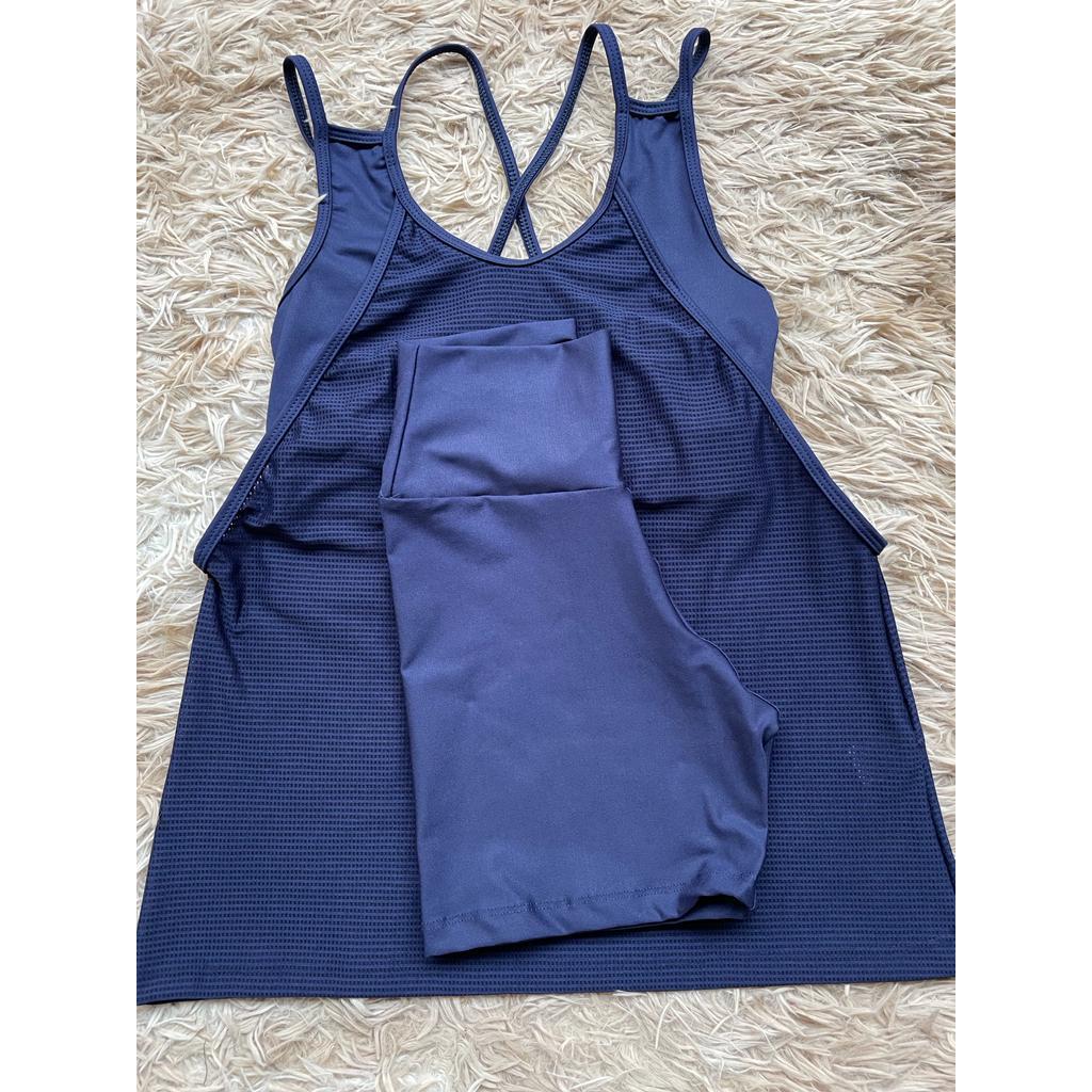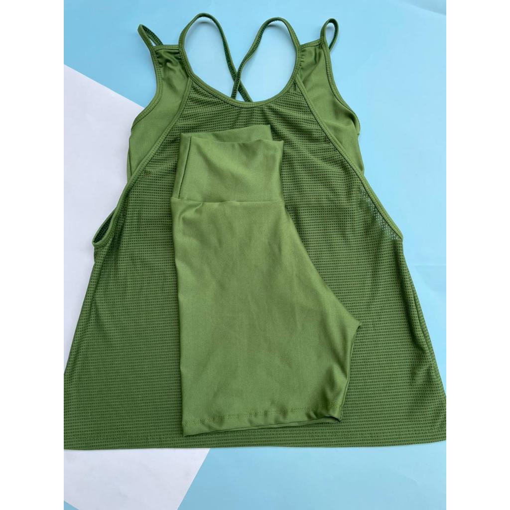 Kit academia conjunto fitness trio bermuda short regata e top sem bojo academia zero transparência