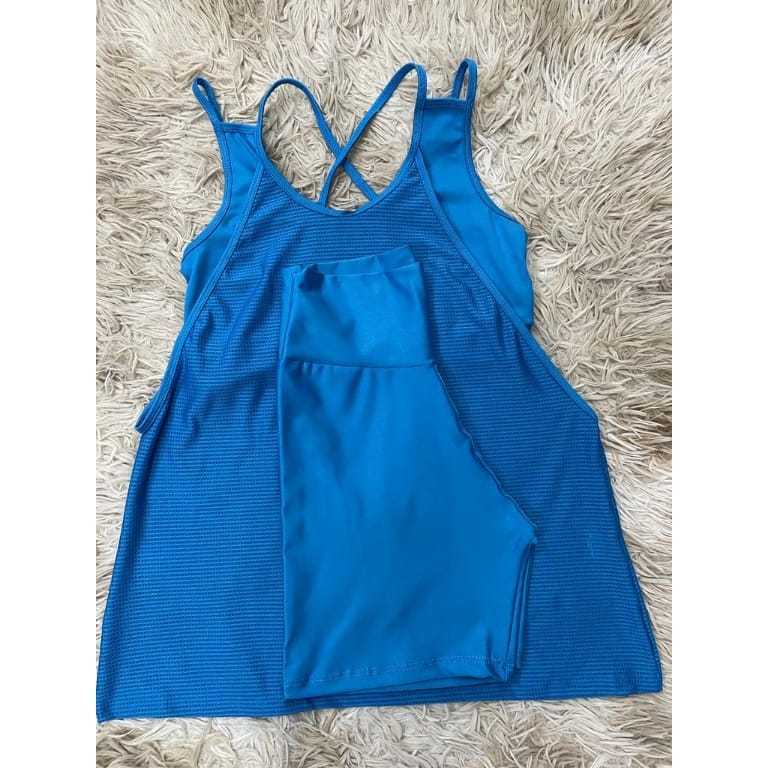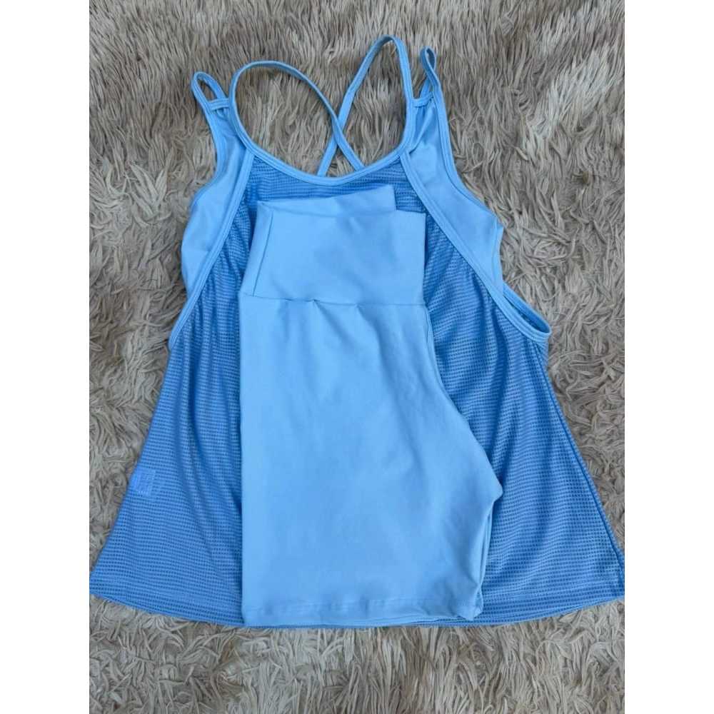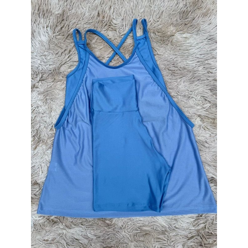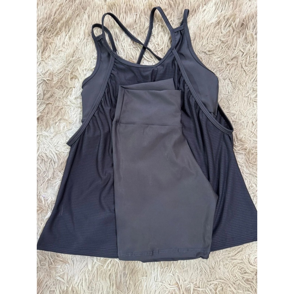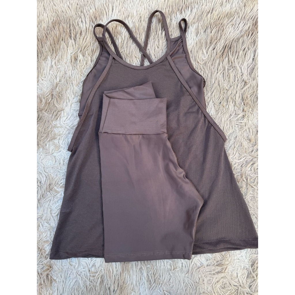 Kit academia conjunto fitness trio bermuda short regata e top sem bojo academia zero transparência