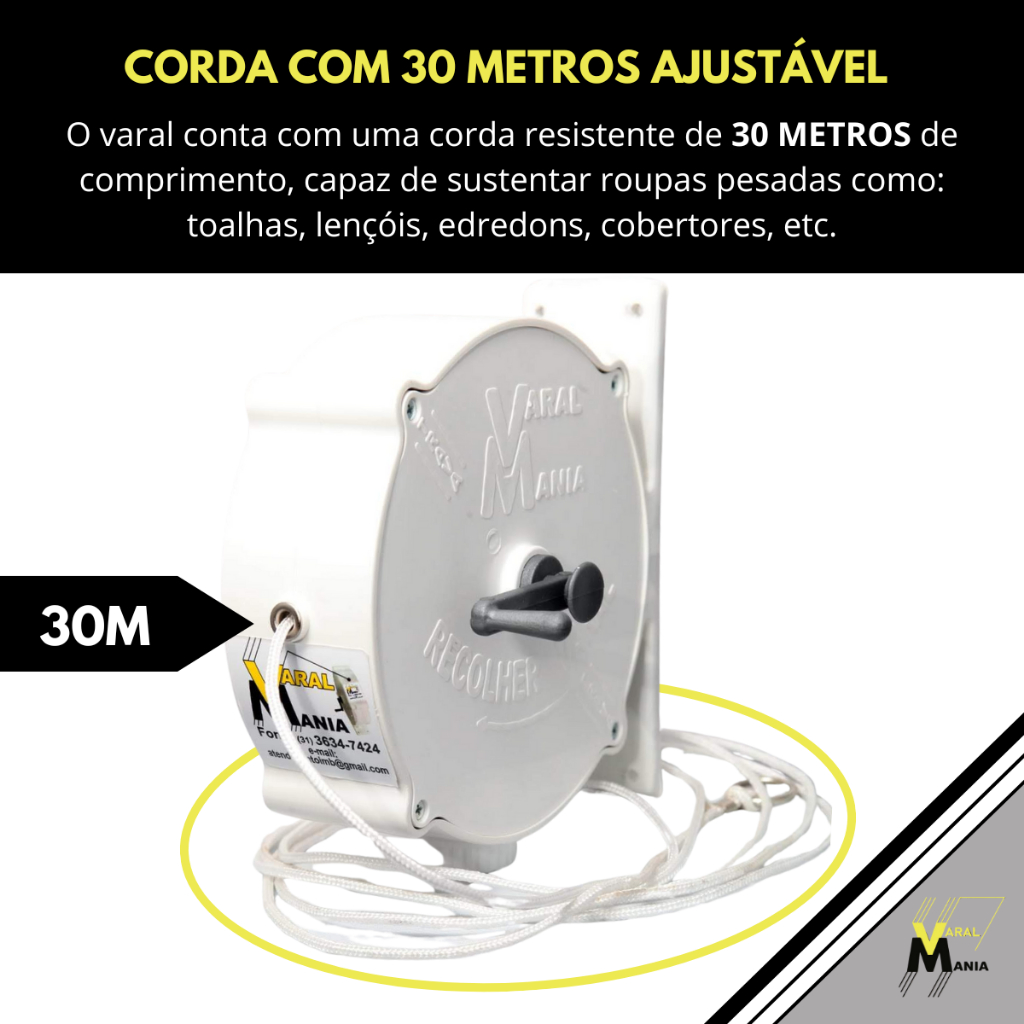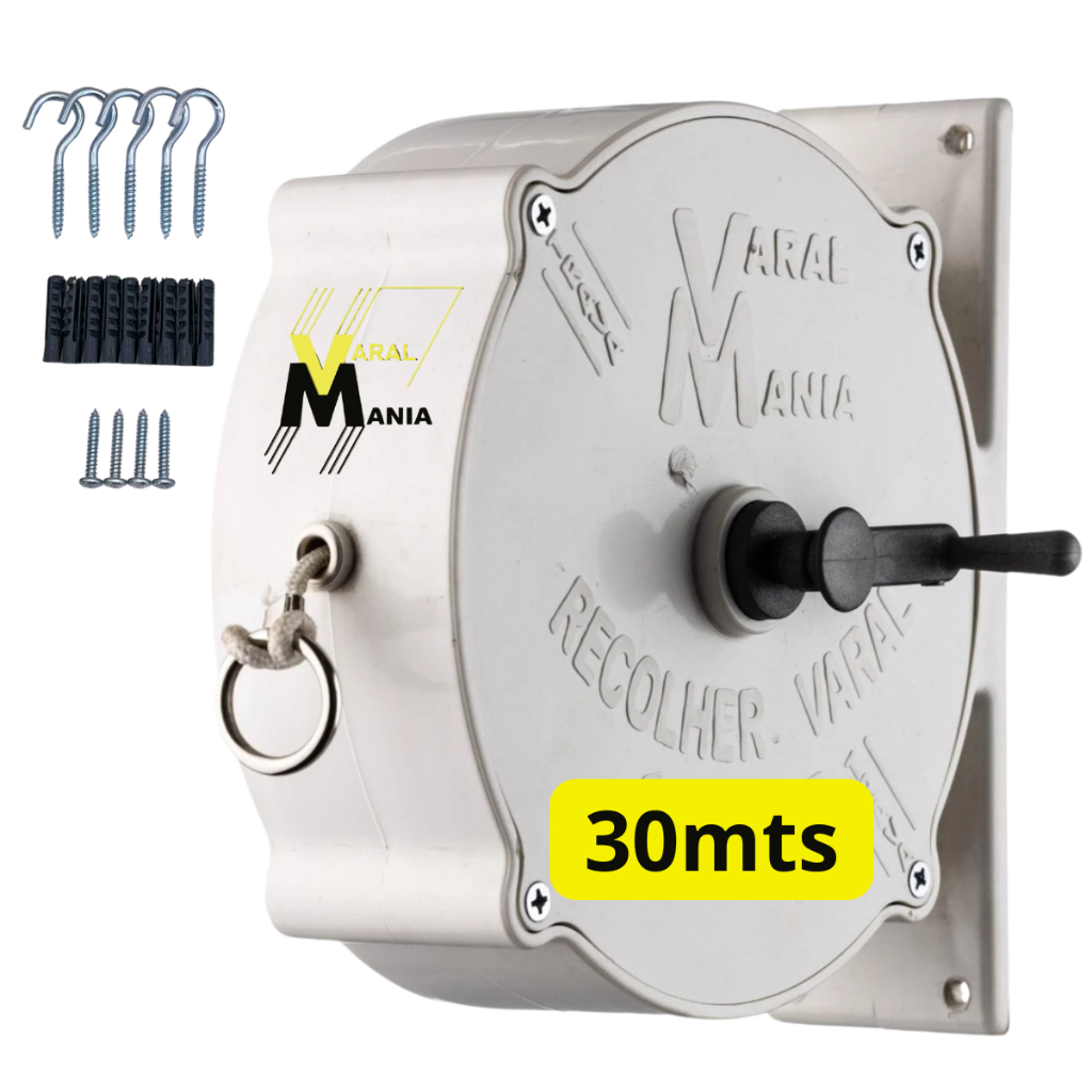 Varal Recolhível De Parede 30m Branco Resistente Ao Tempo, Sol e Chuva Para Casas e Apartamentos