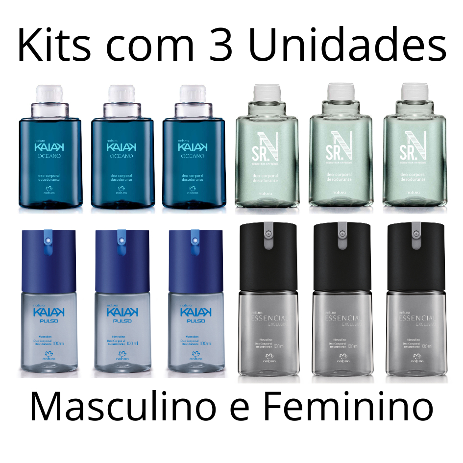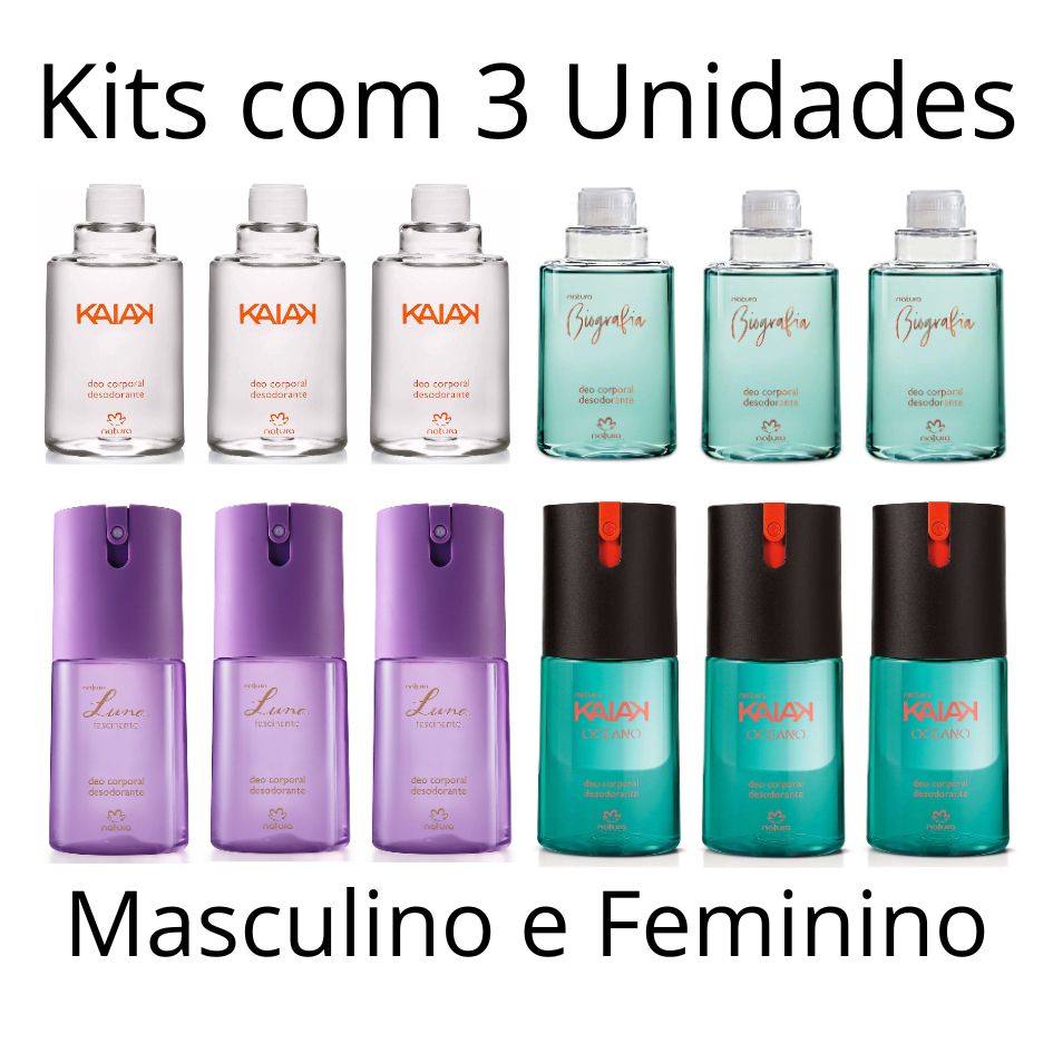 Kit com 3 unidades - Desodorante Spray Deo Corporal Natura Masculino e Feminino Frasco e Refil 100ml