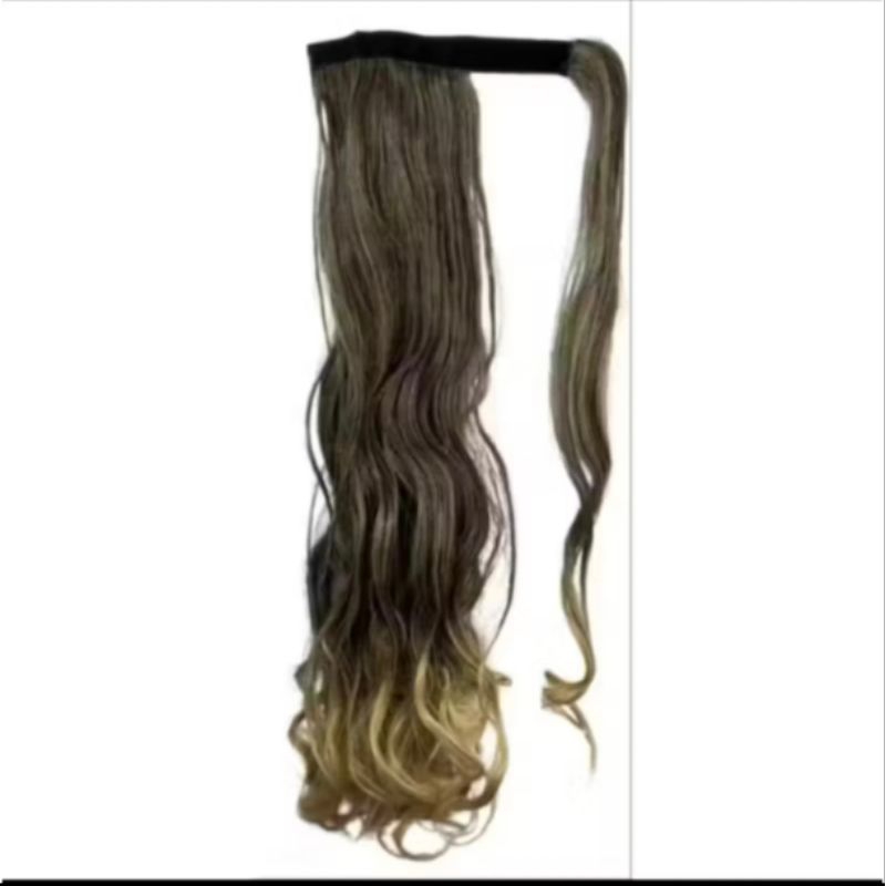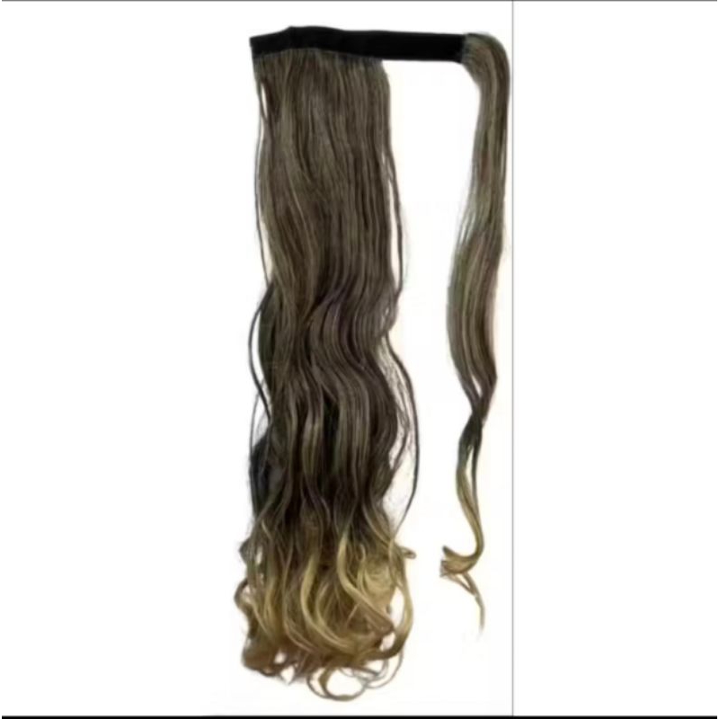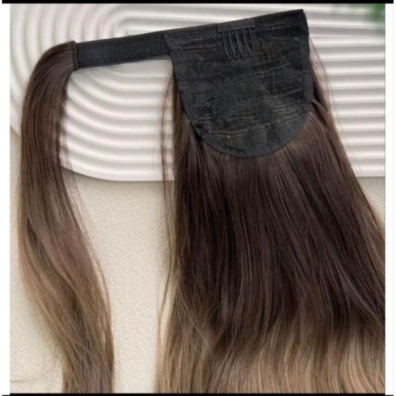 Extensão de cabelo rabo de cavalo bio orgânico Premium Ombre marrom loiro com Velcro
