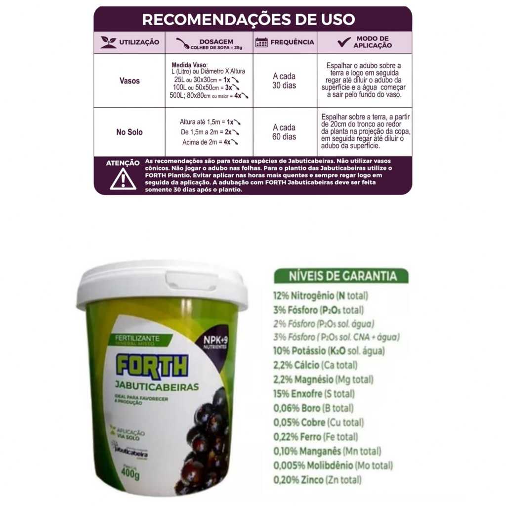 kit forth frutas + forth jabuticabas + forth flores 400g cada adubo fertilizante