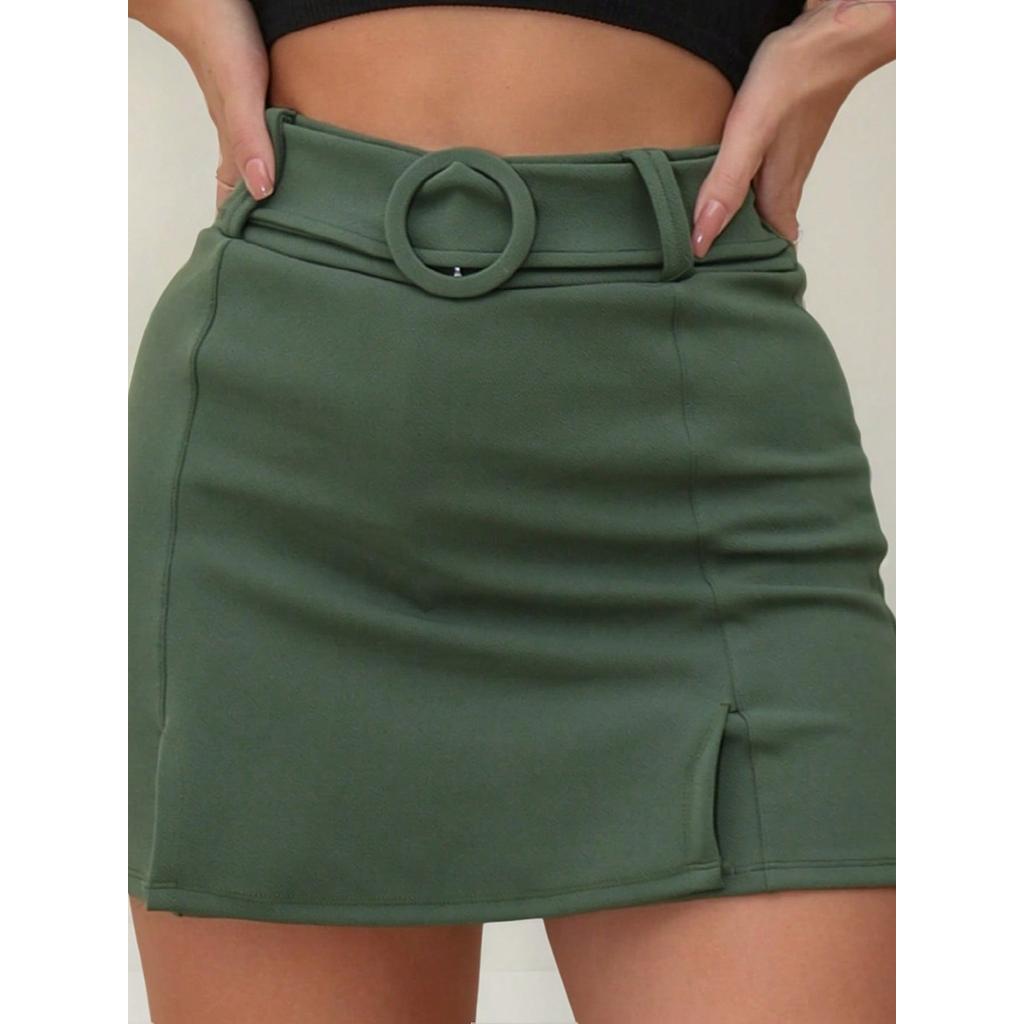 Short Saia Bengaline Fenda Feminino Sainha Curta Bermuda Cintura Alta Com Cinto Fivela Redonda Moda Feminina 2026