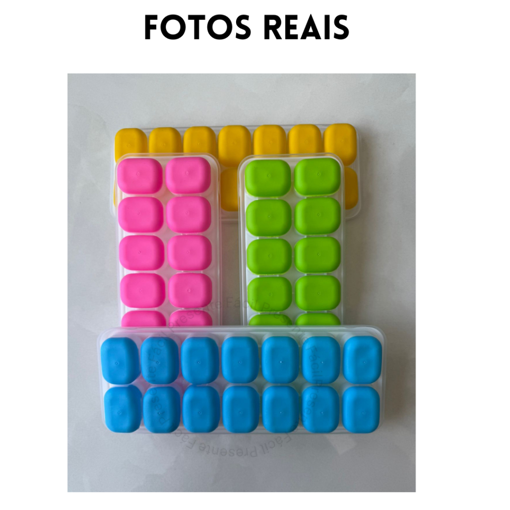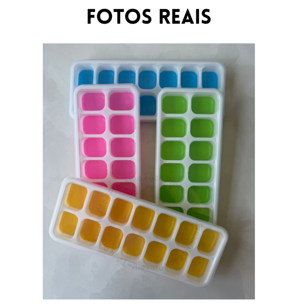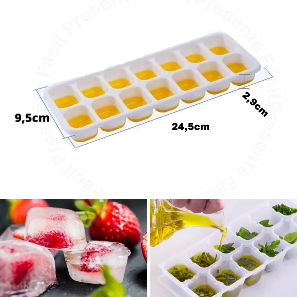 Formas de Gelo com Tampa Rígida Fundo Silicone Flexível Retangular 14 Cubos