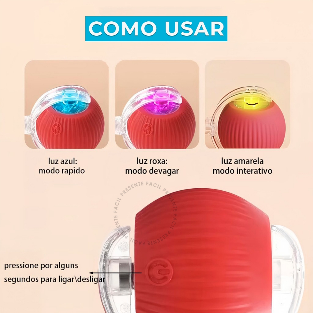 Brinquedo Inteligente Para Gatos Bola de Rolamento Automático Cauda Falsa Interativo Recarregável Elétrico