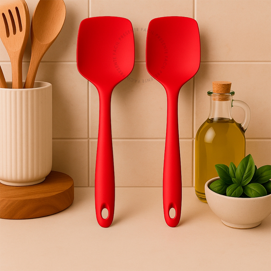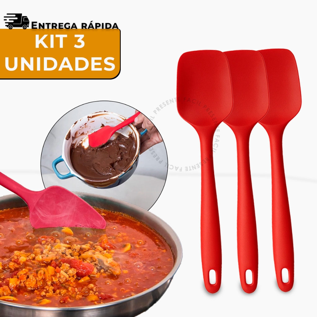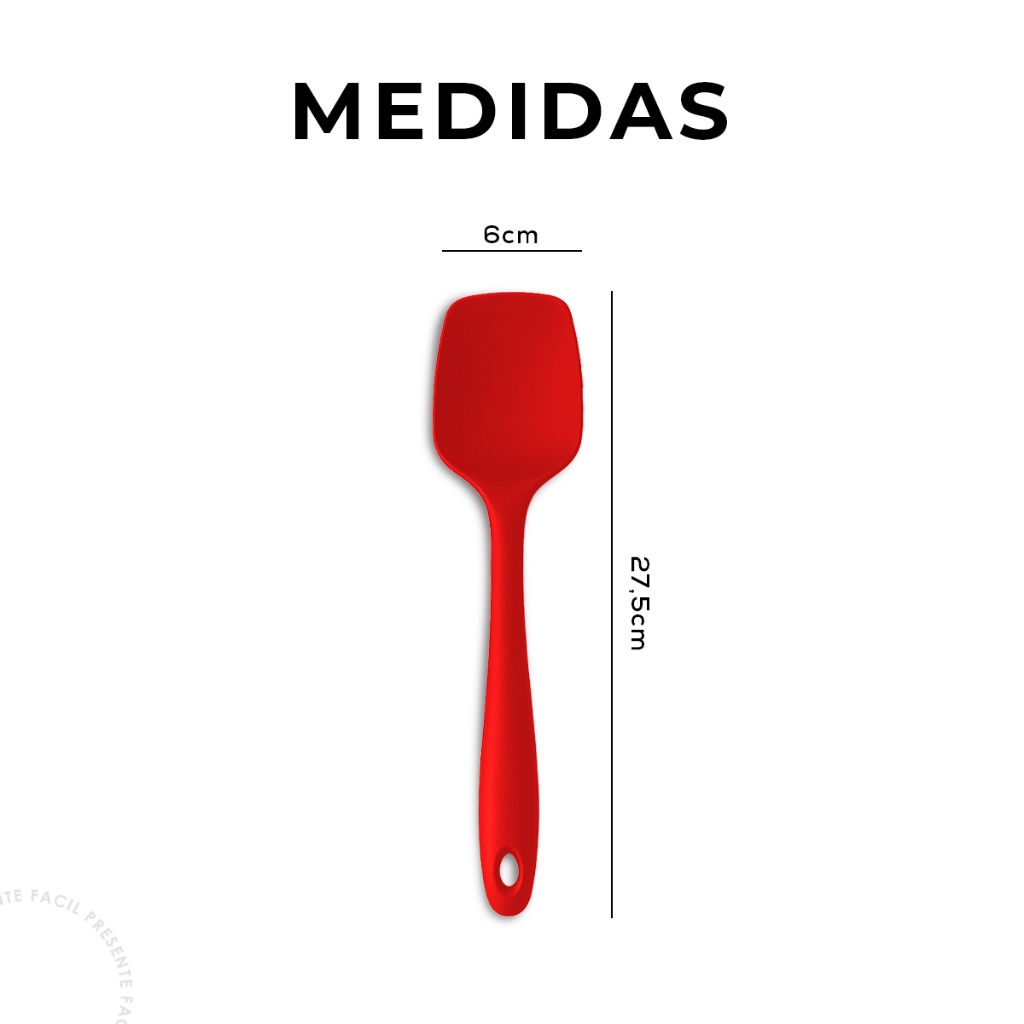 Kit 4 Espátula Silicone Dura Premium Resistente Vermelha Utensílio de Cozinha Colher Macio