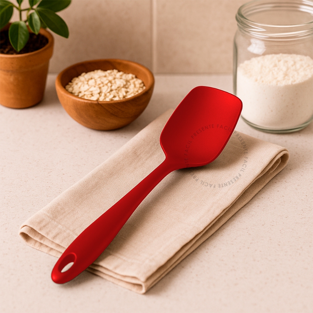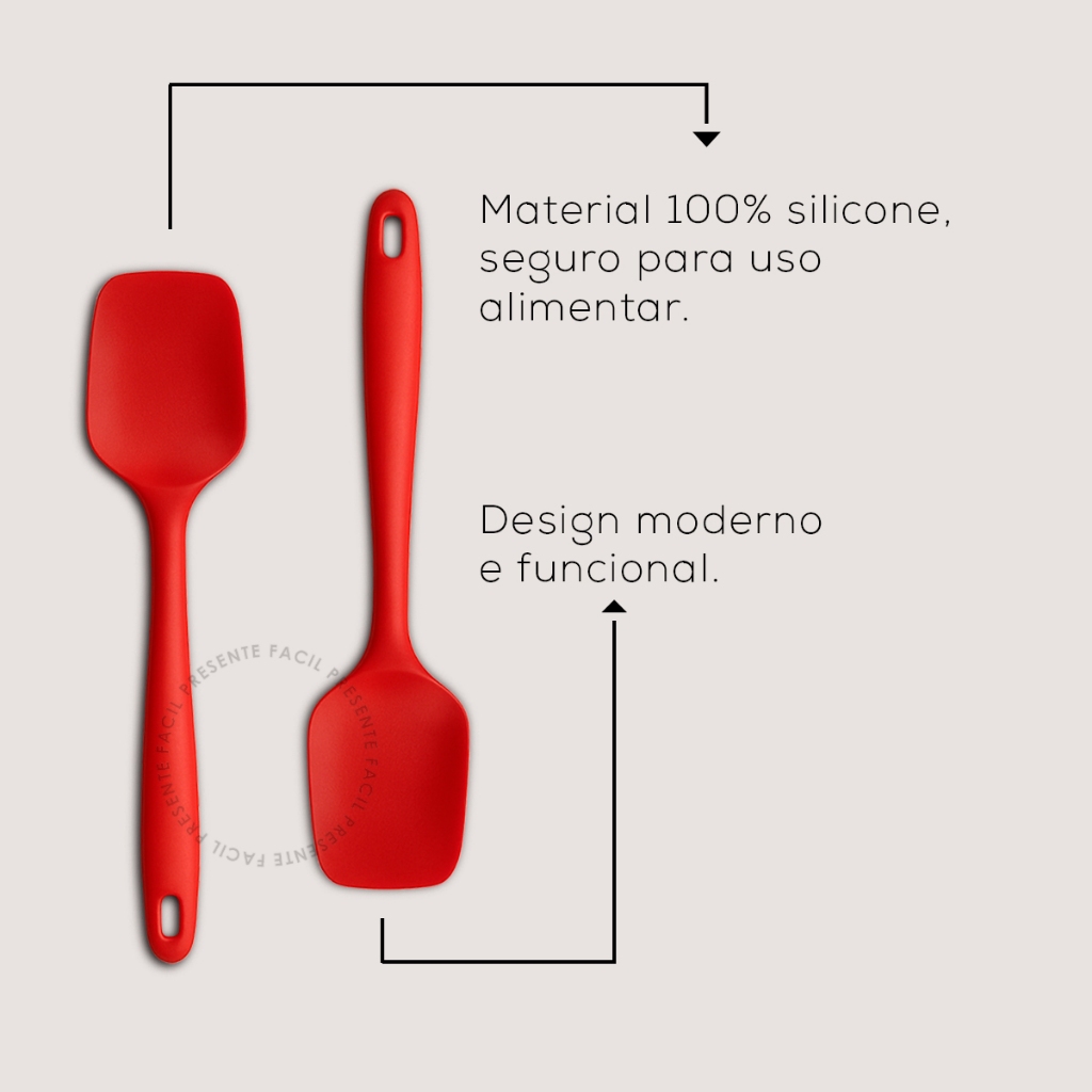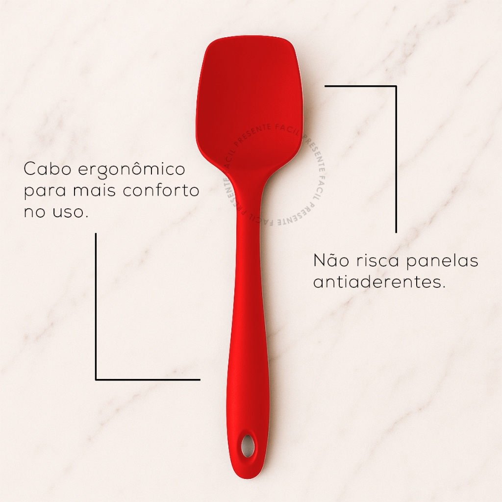 Kit 4 Espátula Silicone Dura Premium Resistente Vermelha Utensílio de Cozinha Colher Macio