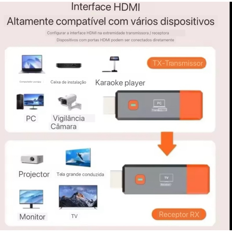 Transmissor Receptor Hdmi Sem Fio Rápido 1080p 50 M + Nf