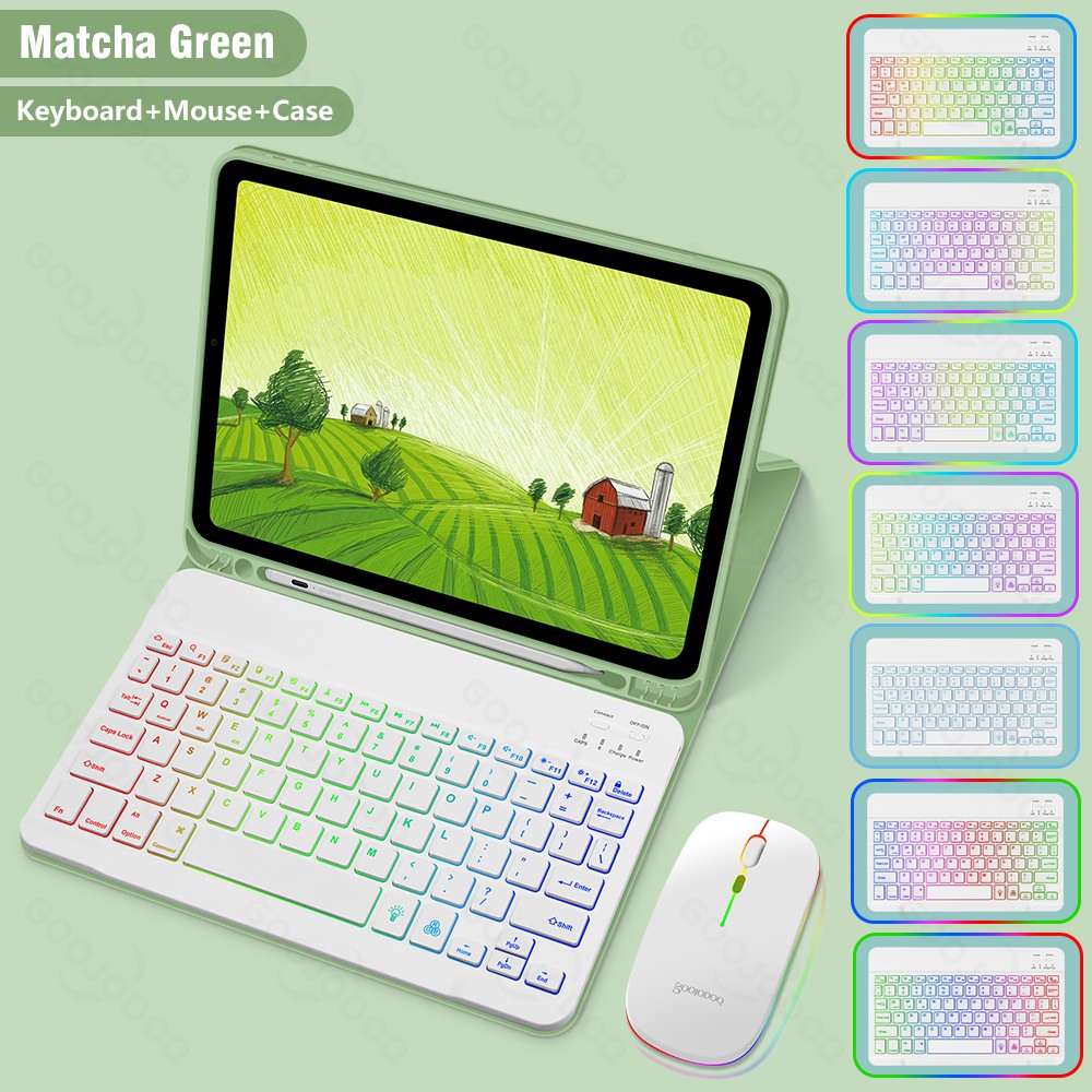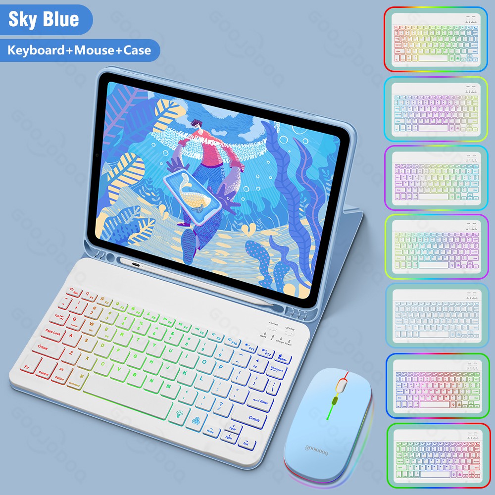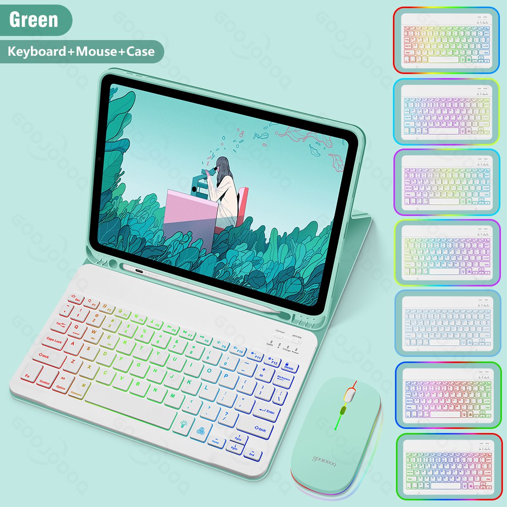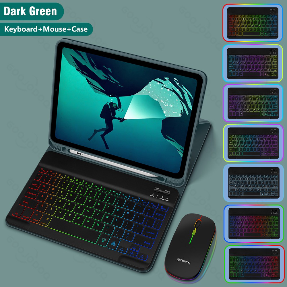Goojodoq Capa para ipad com teclado e mouse com suporte para lápis retroiluminado 10º 9º 8º 7º Gen Air 3 4 5 Pro 11 2022