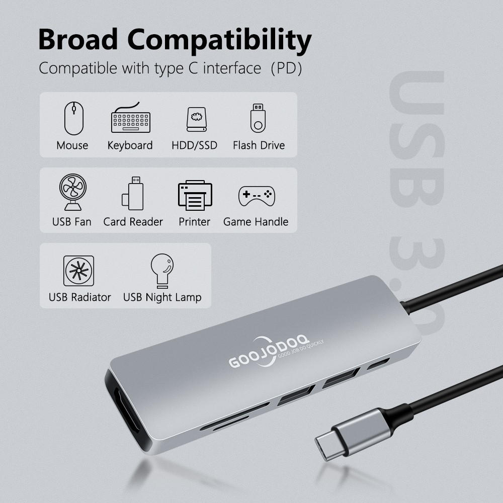Goojodoq 6 Em 1 Usb Tipo C Hub Adaptador Leitor De Carrinho O Hdmi Usb C Parágrafo Usb 3.0 Para Macbook Pro