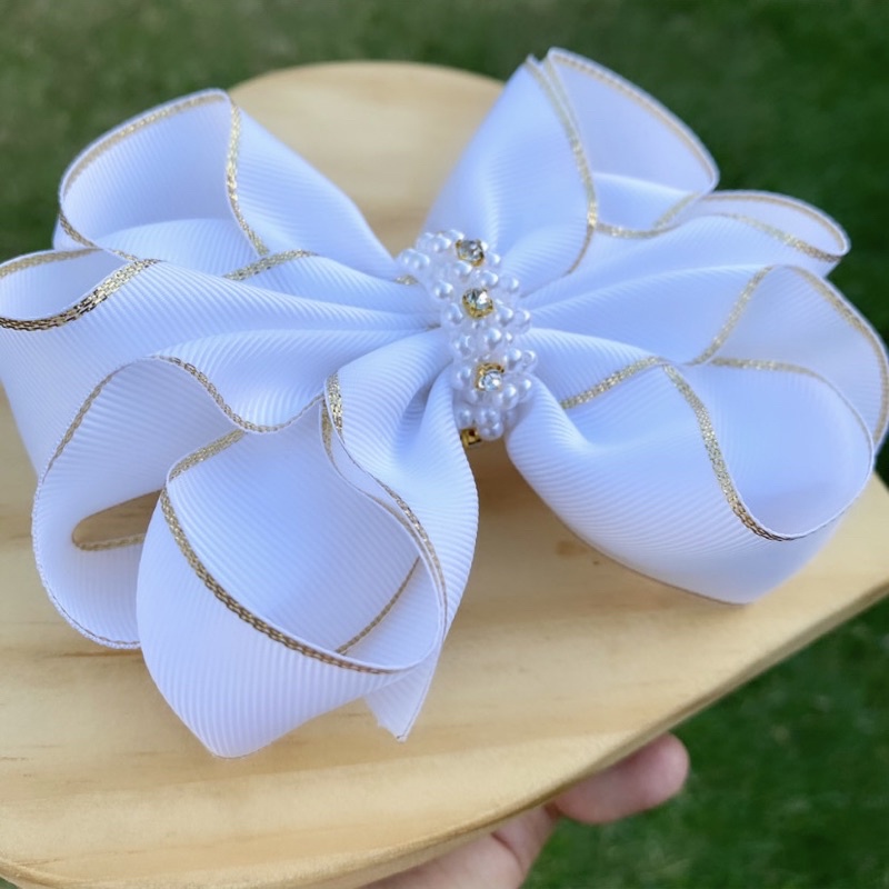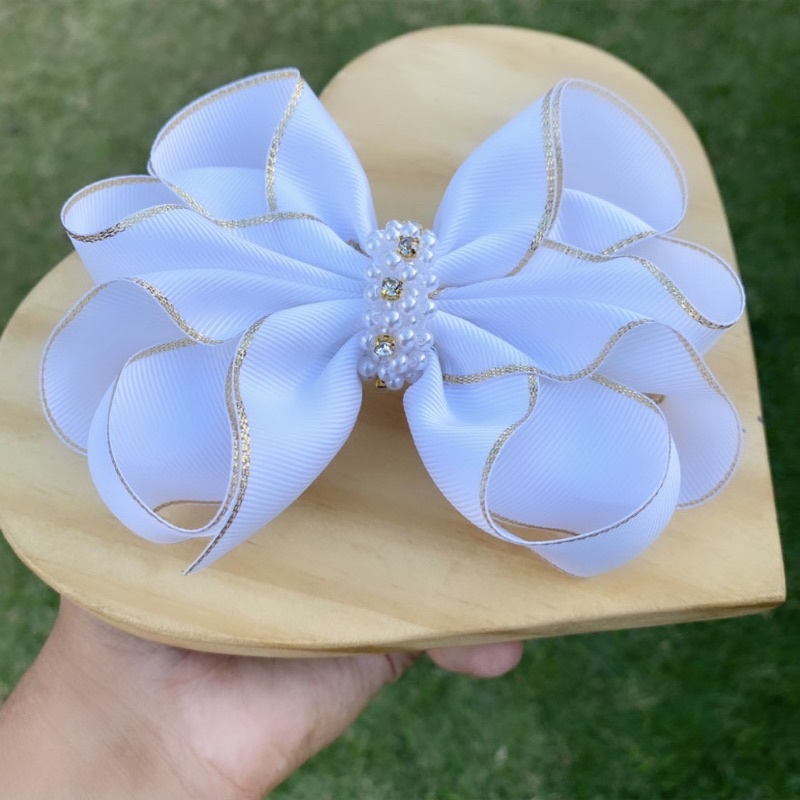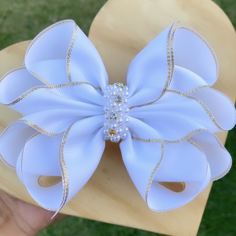Laço de cabelo infantil personalizado luxo strass e pérolas, batizado casamento