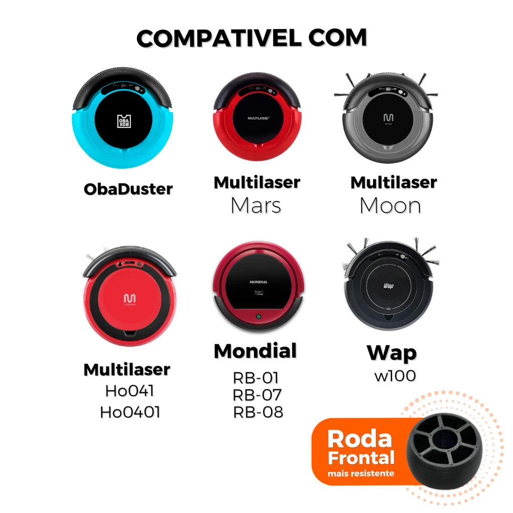 Kit 2 Roda Frontal Dianteira Giratória Robô Aspirador Multilaser Mondial Wap W100-100C ObaBox-Duster