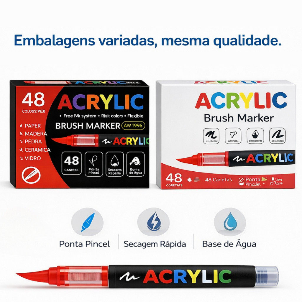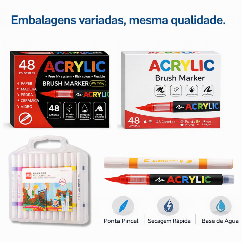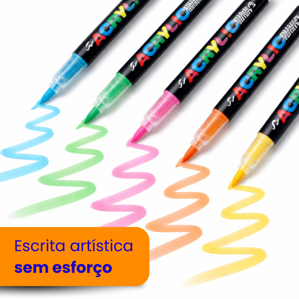 Caneta Marcadora Acrílica Pincel Artístico 12/24/36/48 Cores Vibrantes para Desenho e Pintura DIY