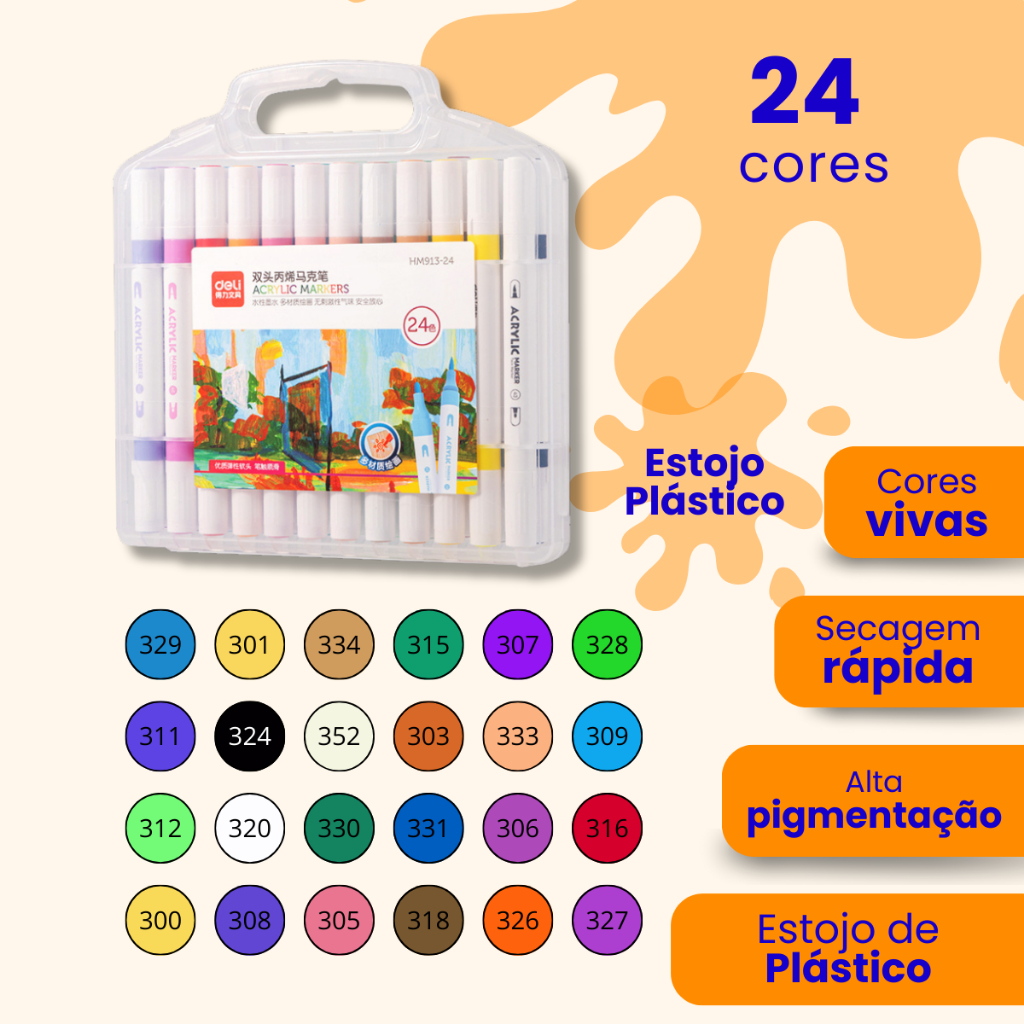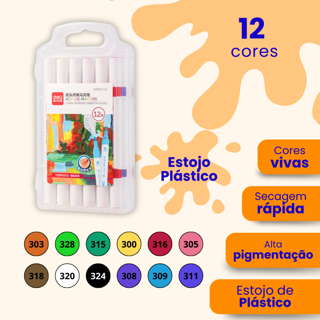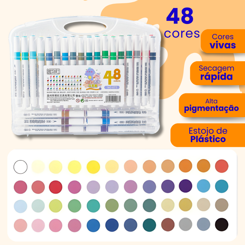 Caneta Marcadora Acrílica Pincel Artístico 12/24/36/48 Cores Vibrantes para Desenho e Pintura DIY