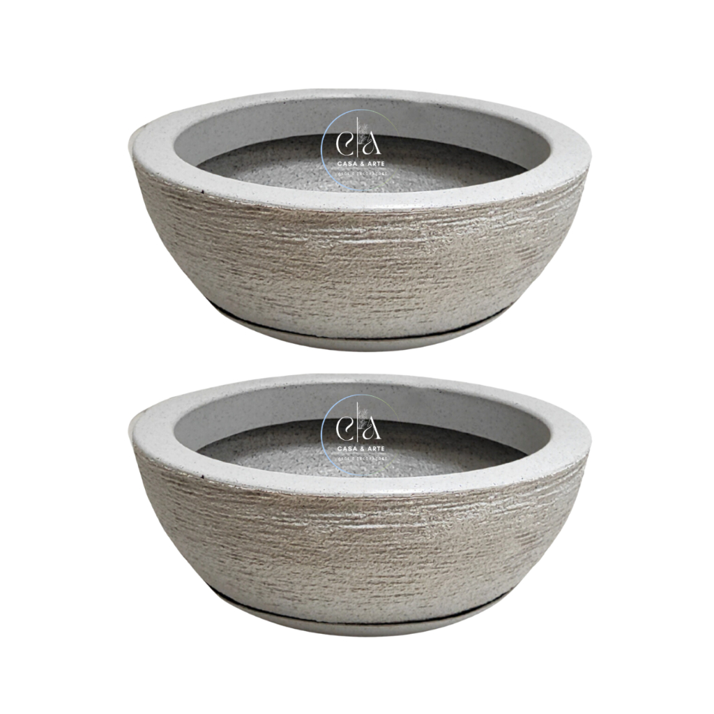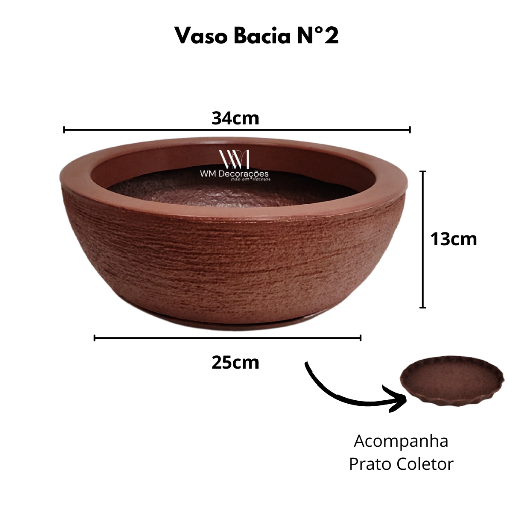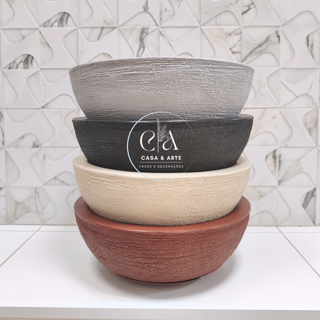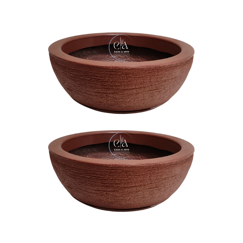 Kit Vasos 2 Bacias Grandes Em Polietileno Jardim Vertical Terrário Cactos 34x13cm c Pratos