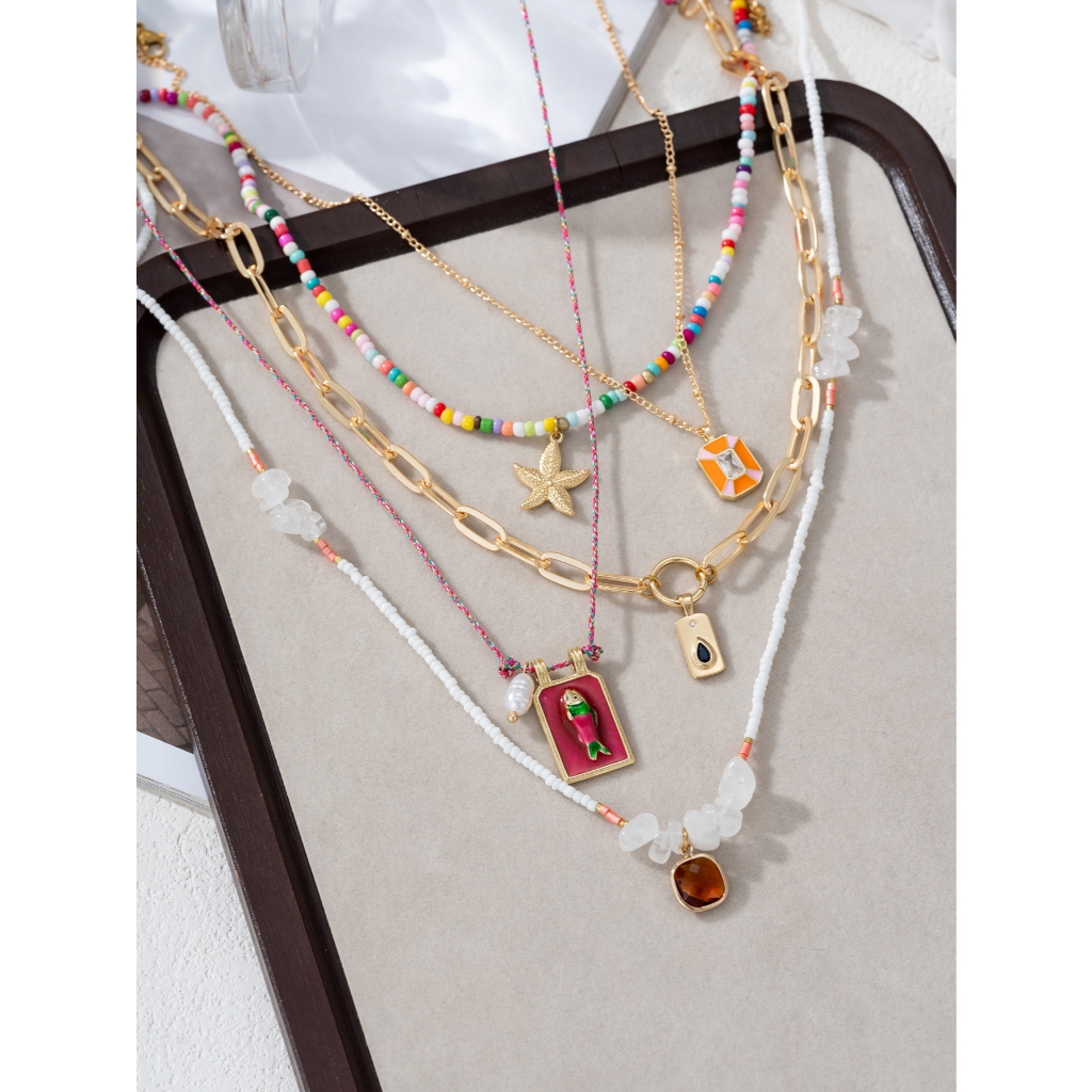 XUYU 4/5 Pcs Charme Boêmio Estrela Do Mar Pingente Irregular Contas De Cascalho Clavícula Corrente Colar Feminino Acessó