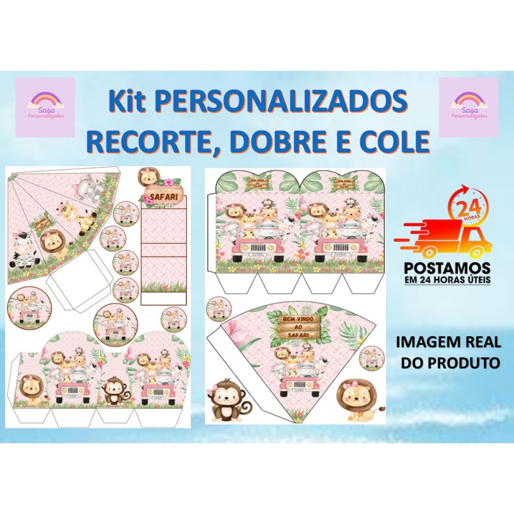 TEMA SAFARI LEMBRANCINHA COM OU SEM NOME - 80/160 ITENS - ENVIO EM 24H