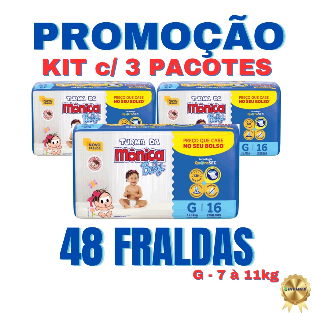 Fralda Infantil Turma da Mônica Baby - RN/P/M/G/XG/XXG