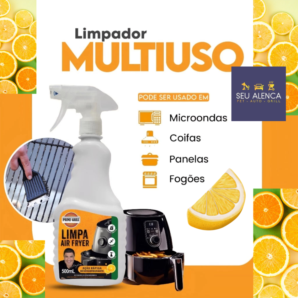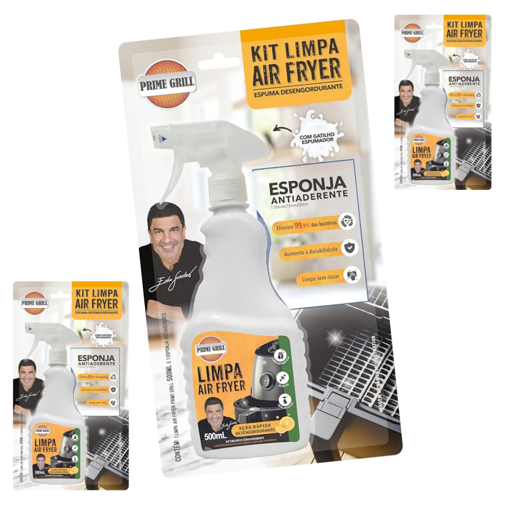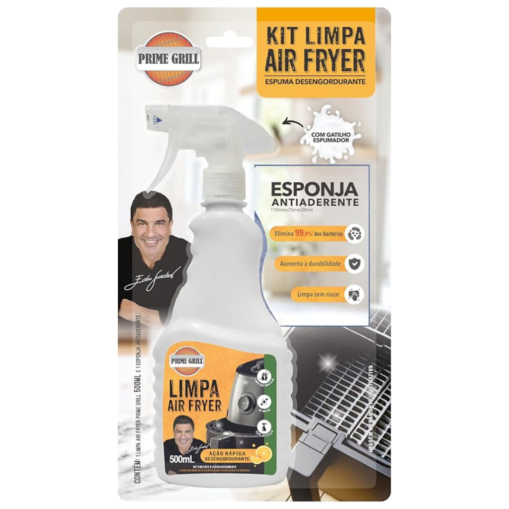 Limpa Air Fryer Desengordurante Cítrico da PRIME GRILL 500ML ou Kit com esponja - (ESCOLHA)