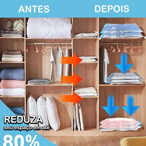 Kit 10 Saco A Vácuo + Bomba Organização Para Roupas Viagem 50 x 60cm