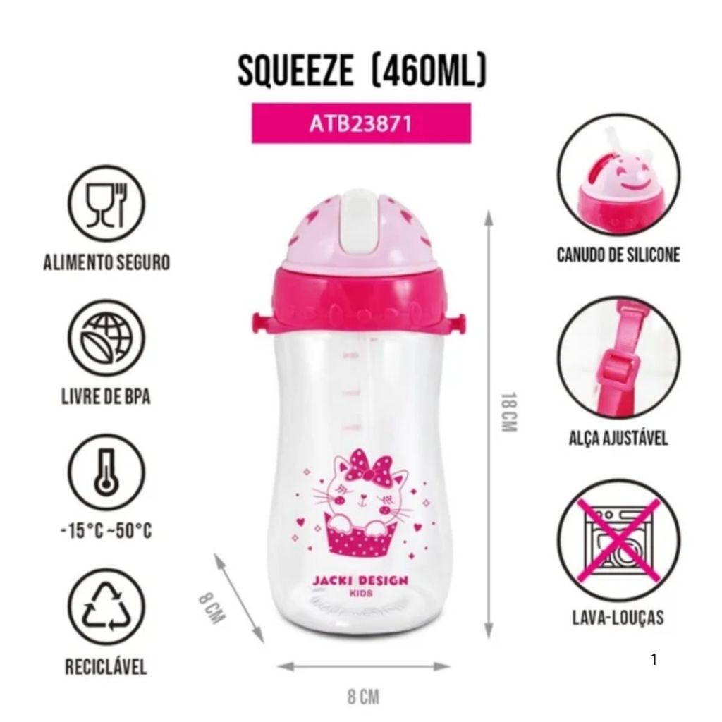 Garrafa 460ml Infantil Com Canudo Criança Garrafinha Squeeze