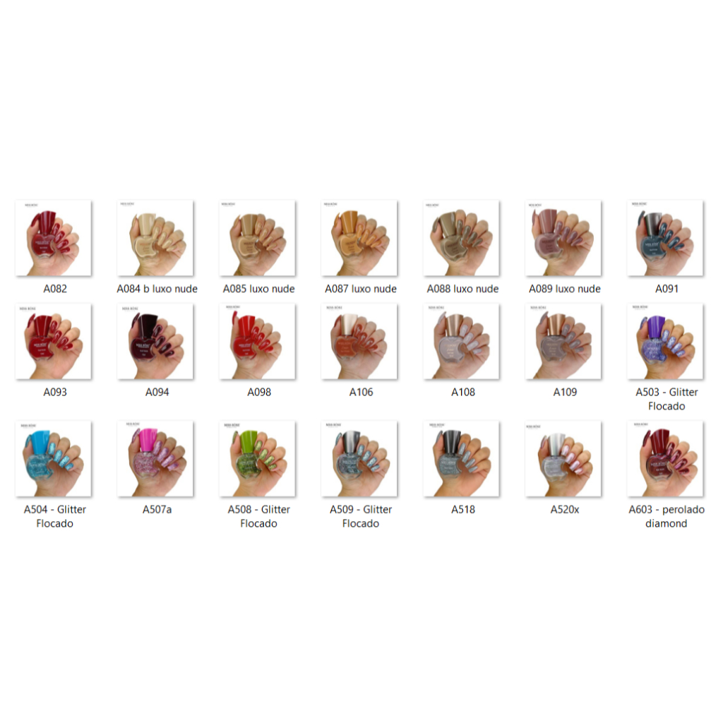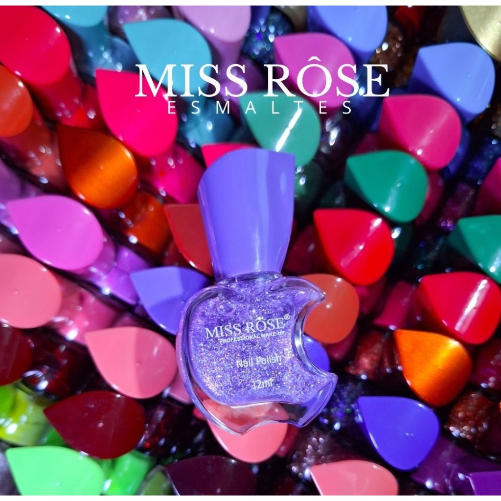 MISS ROSE - Kit com 12 Esmaltes Cremosos Glitters Diamond - Lindas Cores - Você Escolhe - 12ml