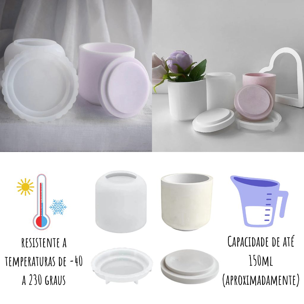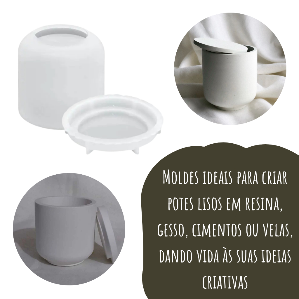 Molde de Silicone Pote com Tampa Liso para Cimento Resina Gesso Velas Forma Potes com Tampa