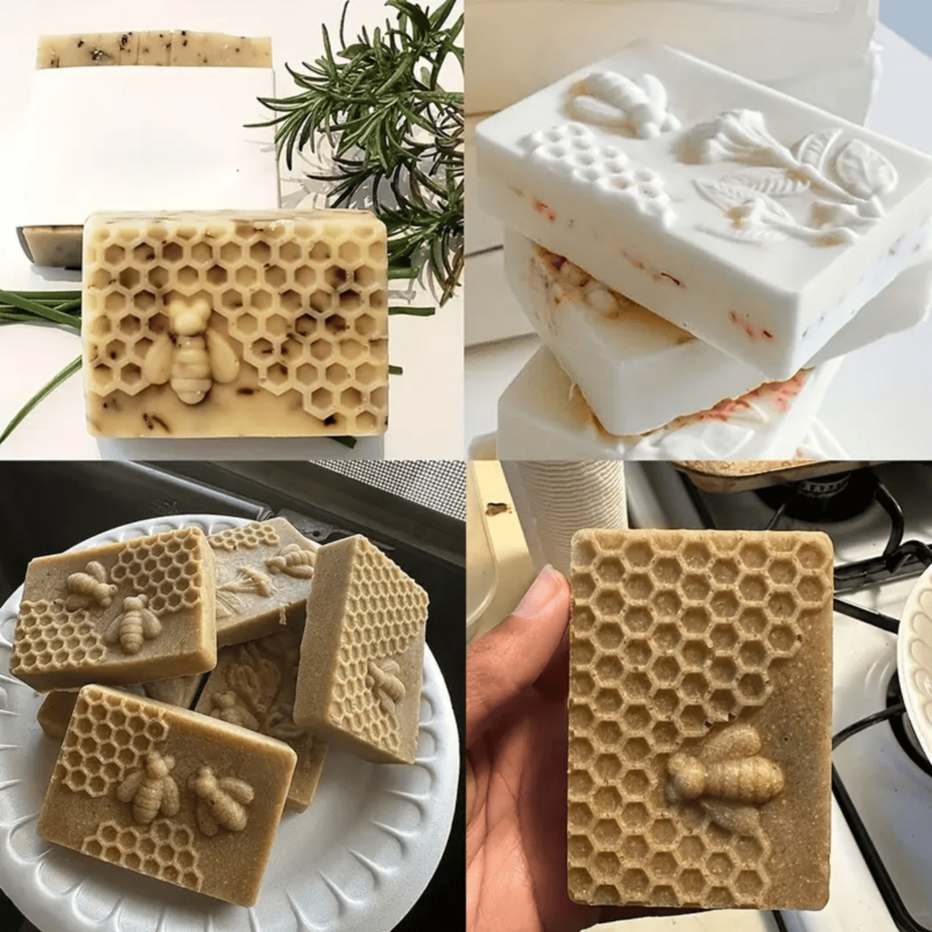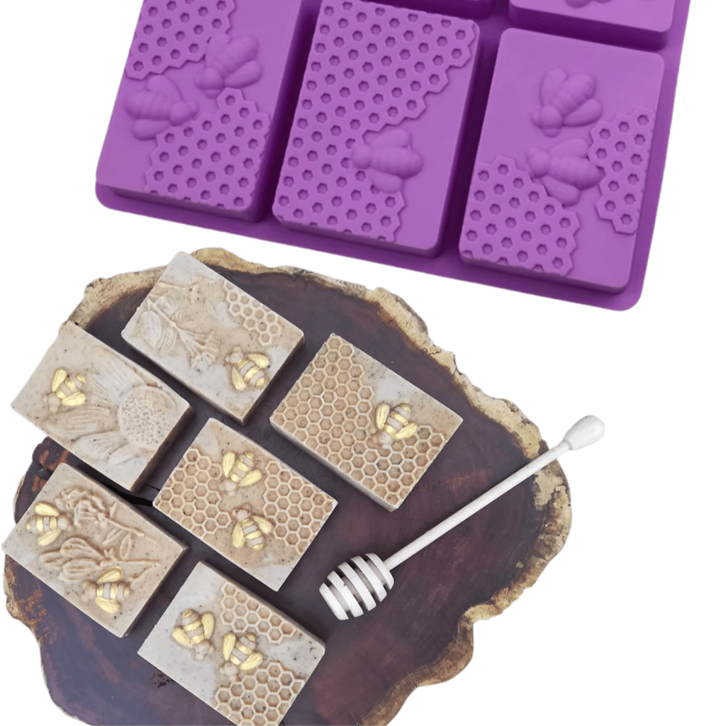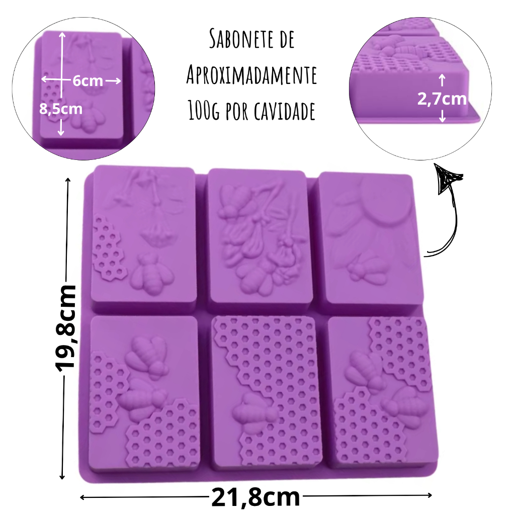 Molde de Silicone Sabonete Artesanal 100g Forma 6 Cavidades Retangular Favo Abelha Sabão Resina Vela