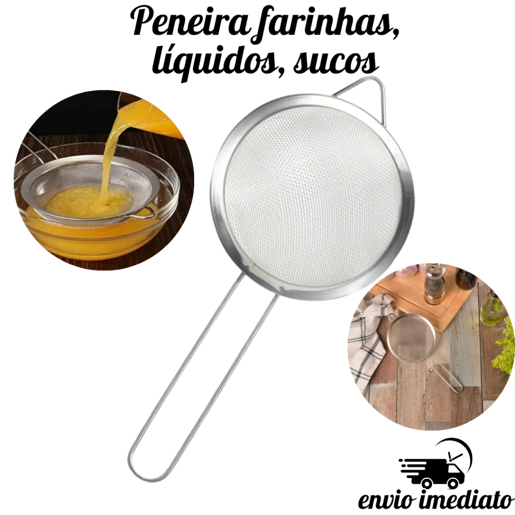 Peneira Coador Aço Inox 10cm Diâmetro Multiuso p/ Cozinha Bar Confeitaria Restaurante