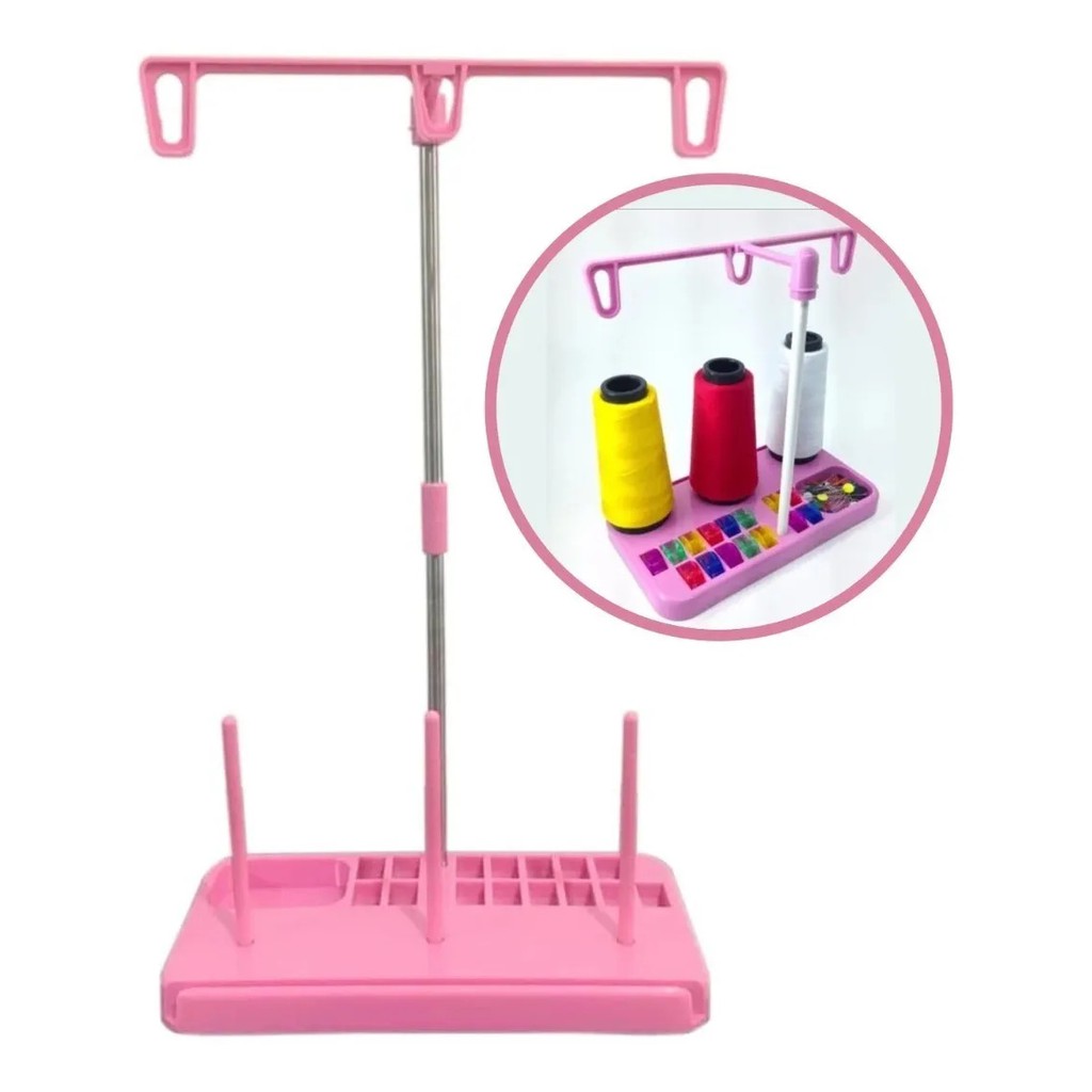 Porta Fio Suporte Para Máquina Doméstica Para Linhas Costura Branco Rosa
