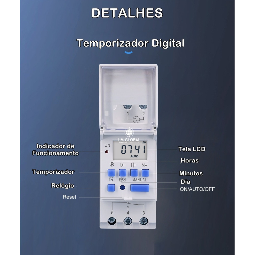 Timer Digital Temporizador 110v 30A 16 Programações + NF