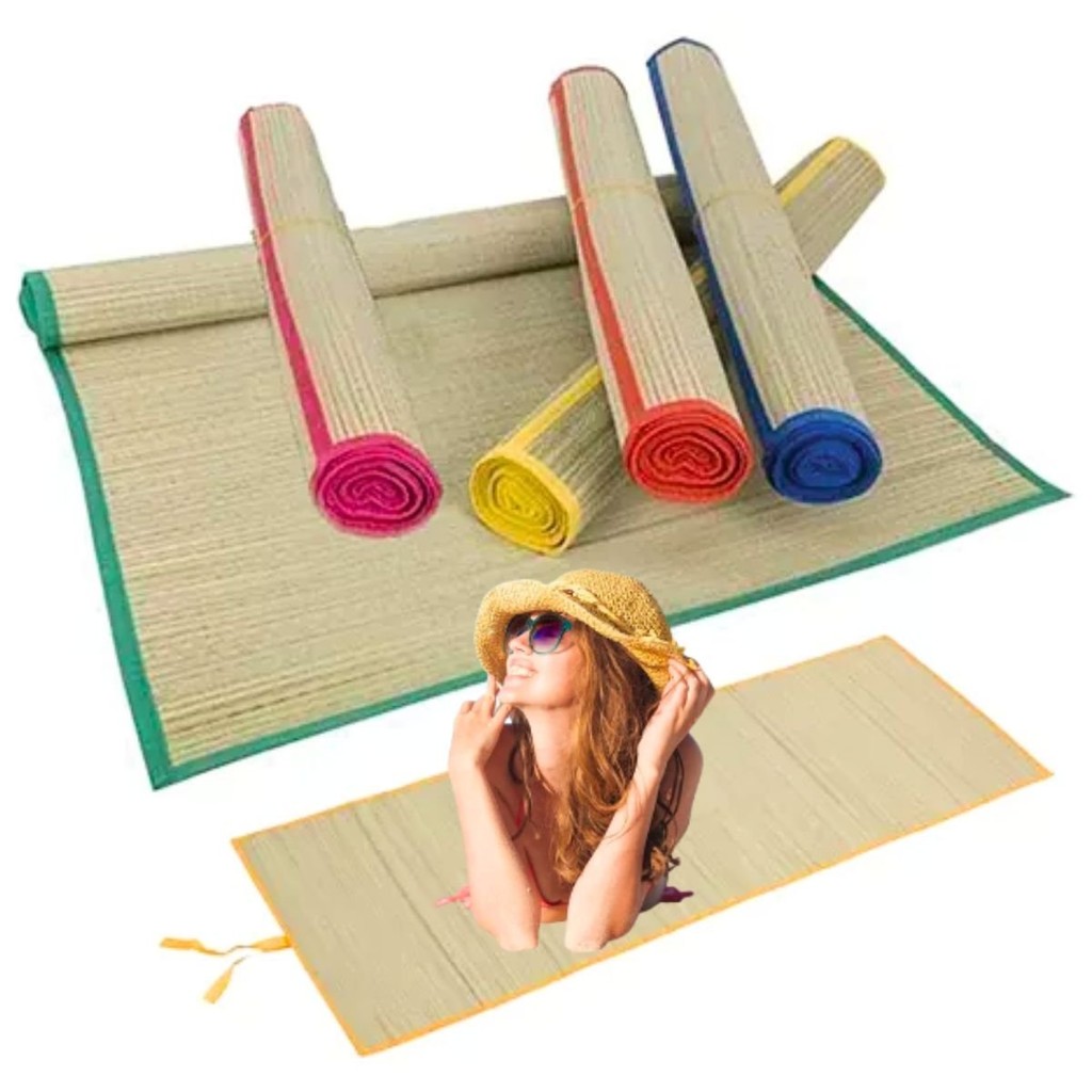 Esteira De Praia Palha Camping Piquenique Dobrável Tapete Piscina