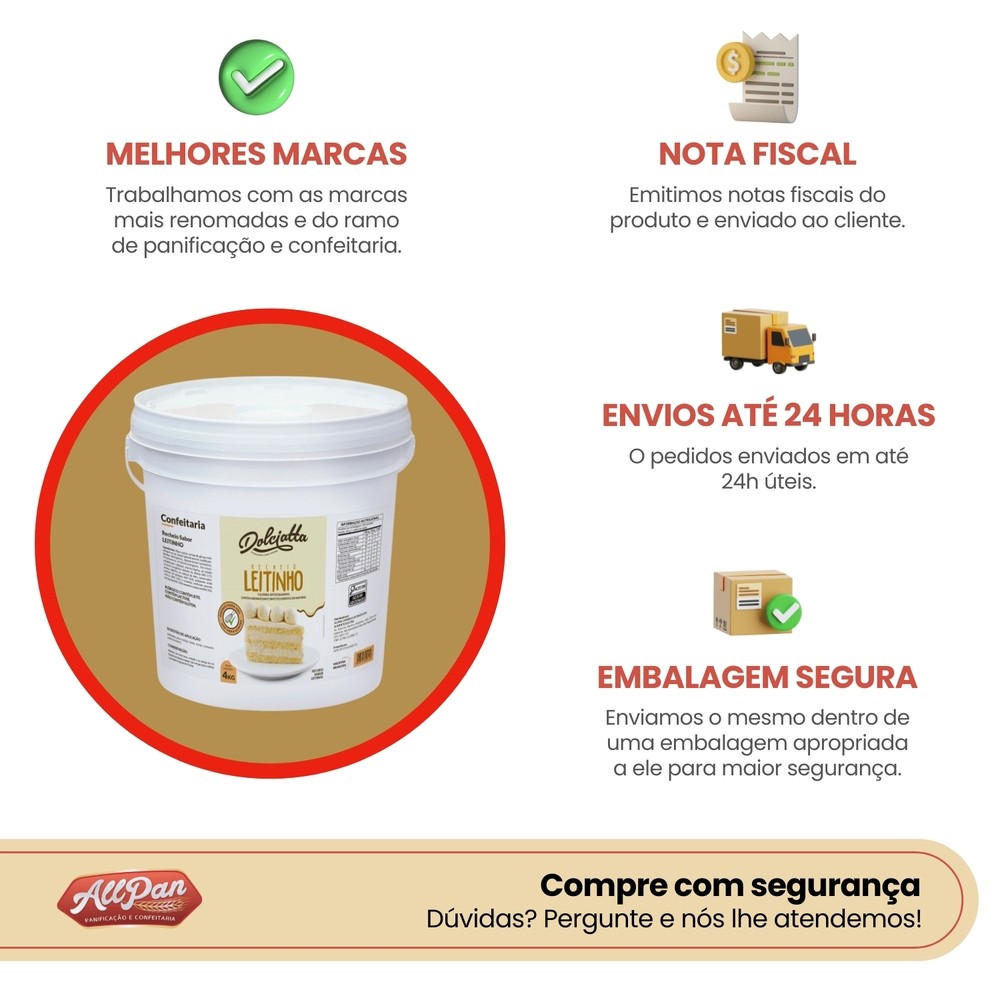 Recheio Pronto Leitinho Dolciatta 4kg Confeitaria Bolos e Tortas