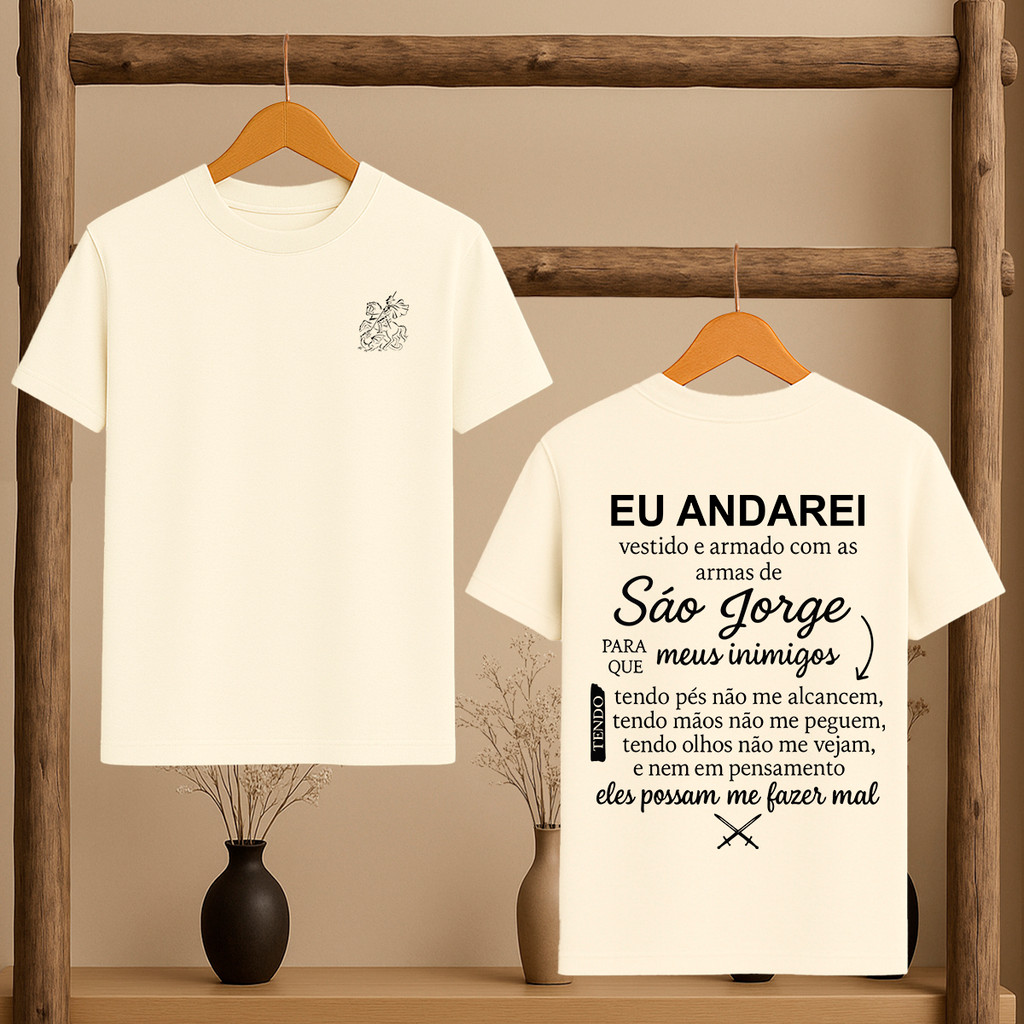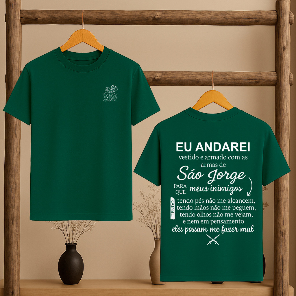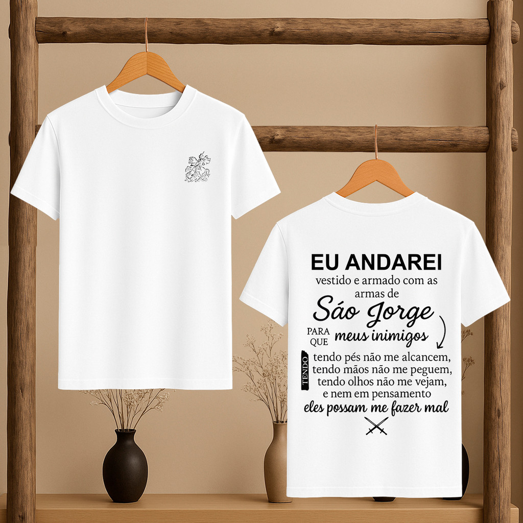 Camiseta Oração de São Jorge Católica Umbanda Candomblé Ogum Orixá Eu Andarei Vestido Modelo Unissex