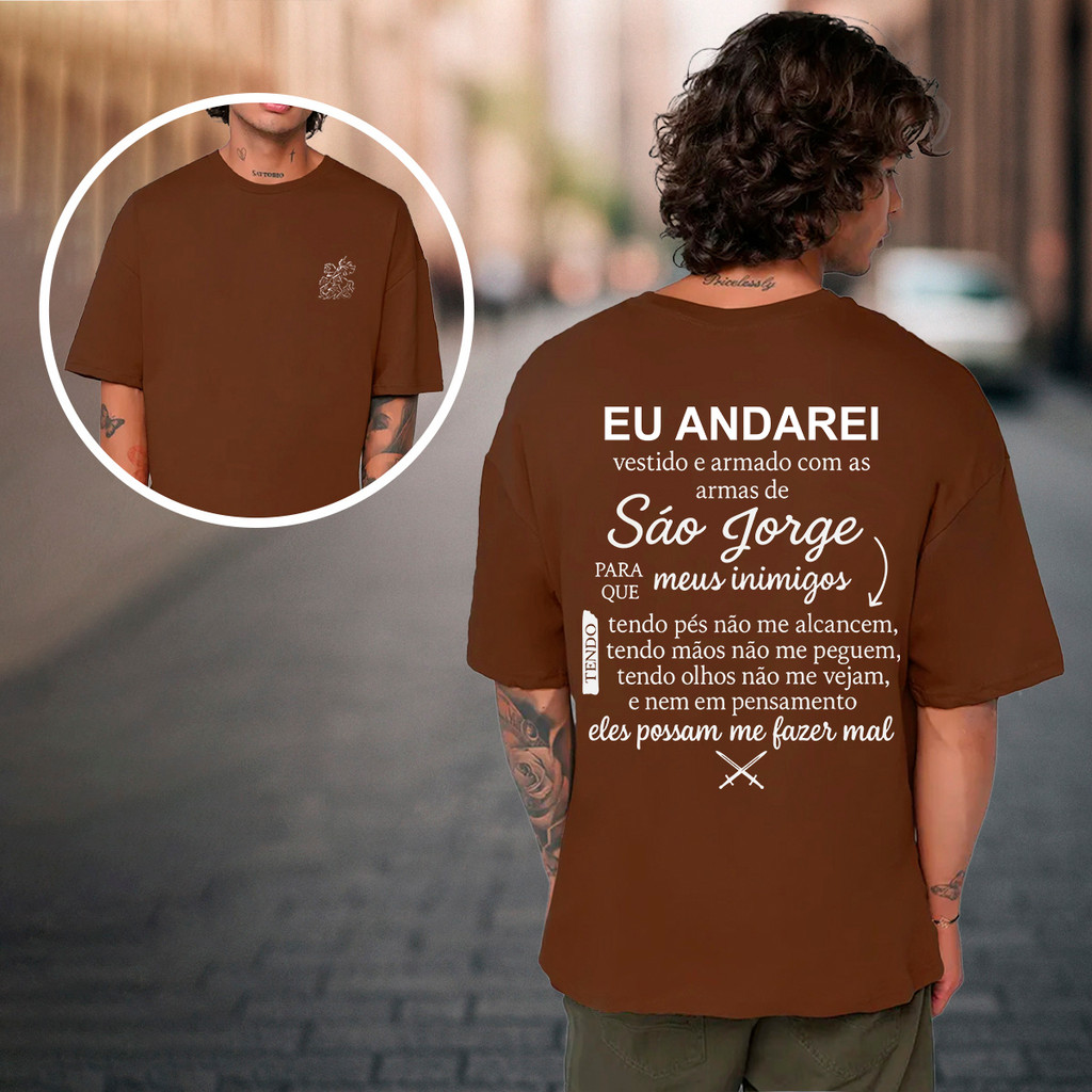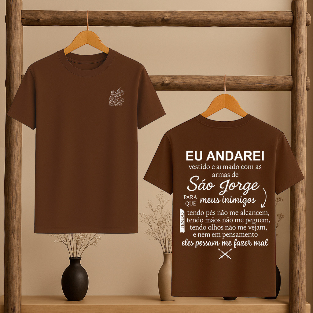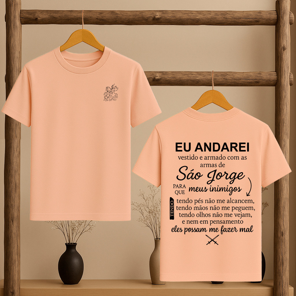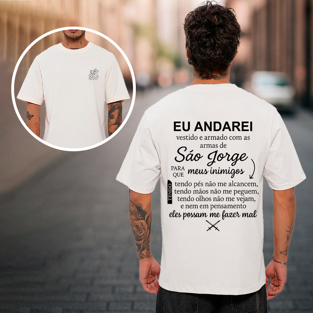 Camiseta Oração de São Jorge Católica Umbanda Candomblé Ogum Orixá Eu Andarei Vestido Modelo Unissex