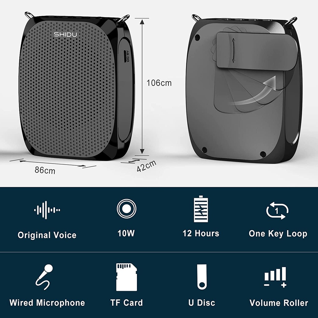 Amplificador De Voz Portátil SHIDU Alto-Falante Pessoal Microfone Fone De Ouvido Mini Sistema Pa Recarregável Para Pro