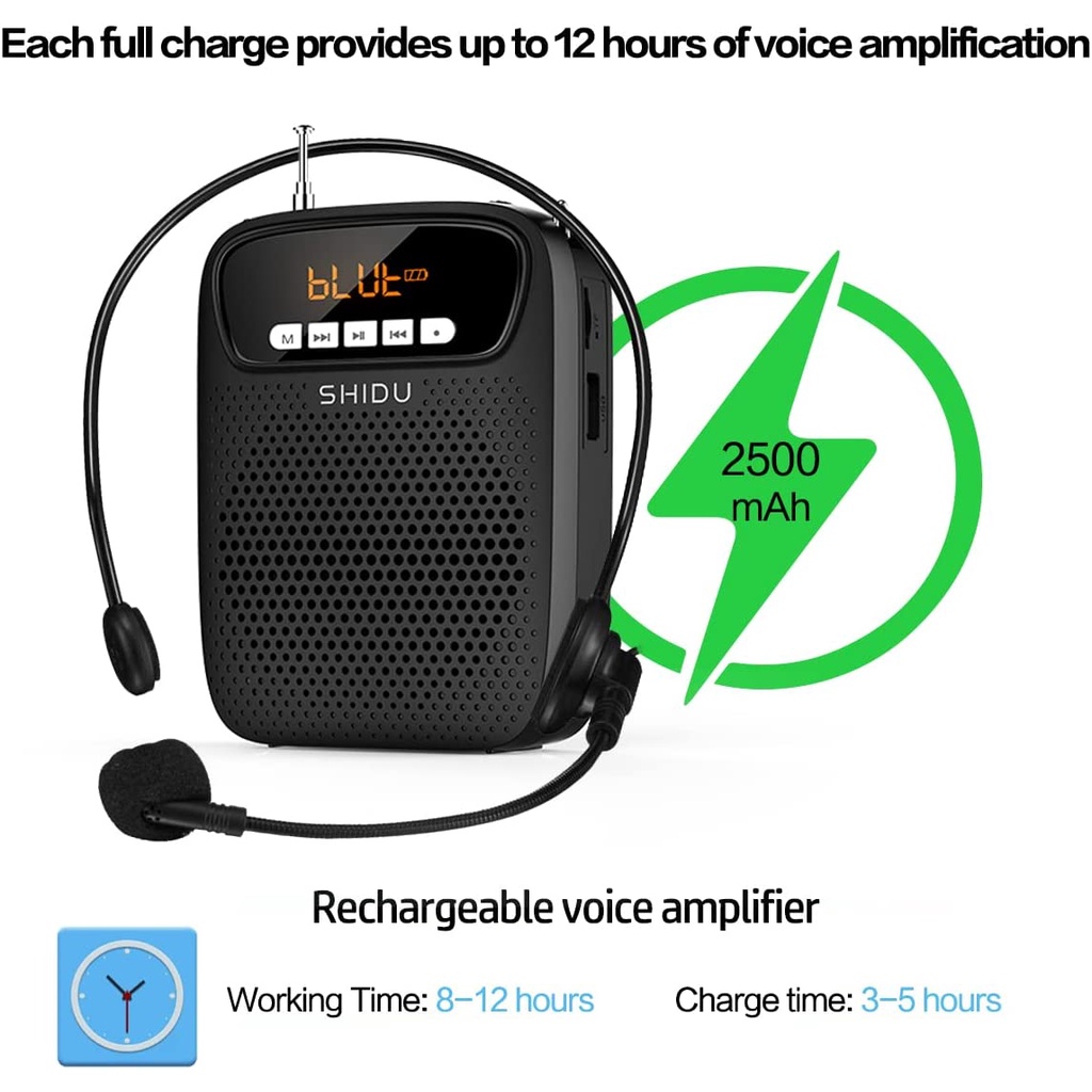 SHIDU Amplificador De Voz Portátil Microfone De Fone De Ouvido Mini PA Leve Com Fio Sistema Megafone Usável Suporta USB