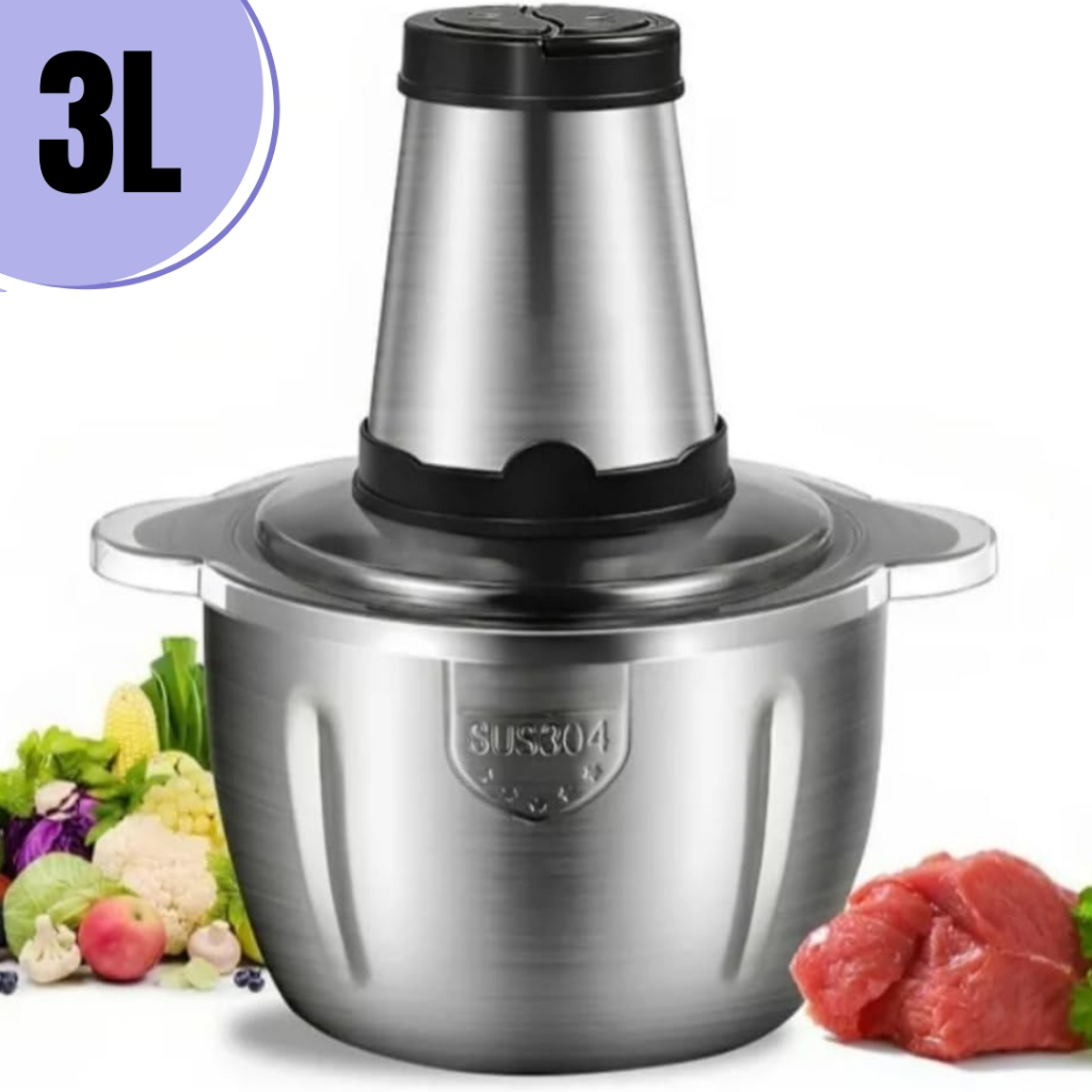 Picador De Alimentos 2L 3L 5L Moedor Elétrico Triturador Potente Carne Legumes Temperos Inox 110v ou 220v