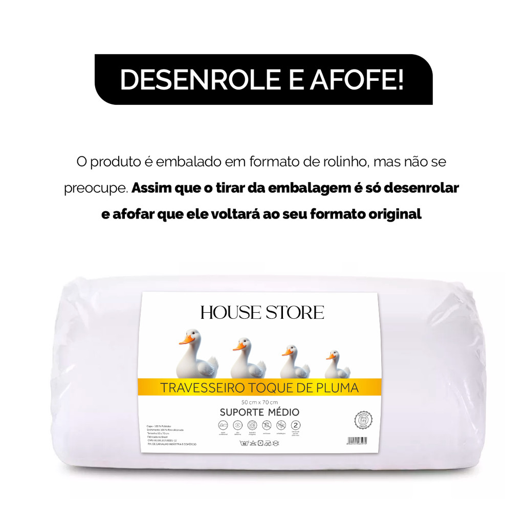 Travesseiro Pluma de Ganso Confortavel e Macio Antiacaro 50x70cm